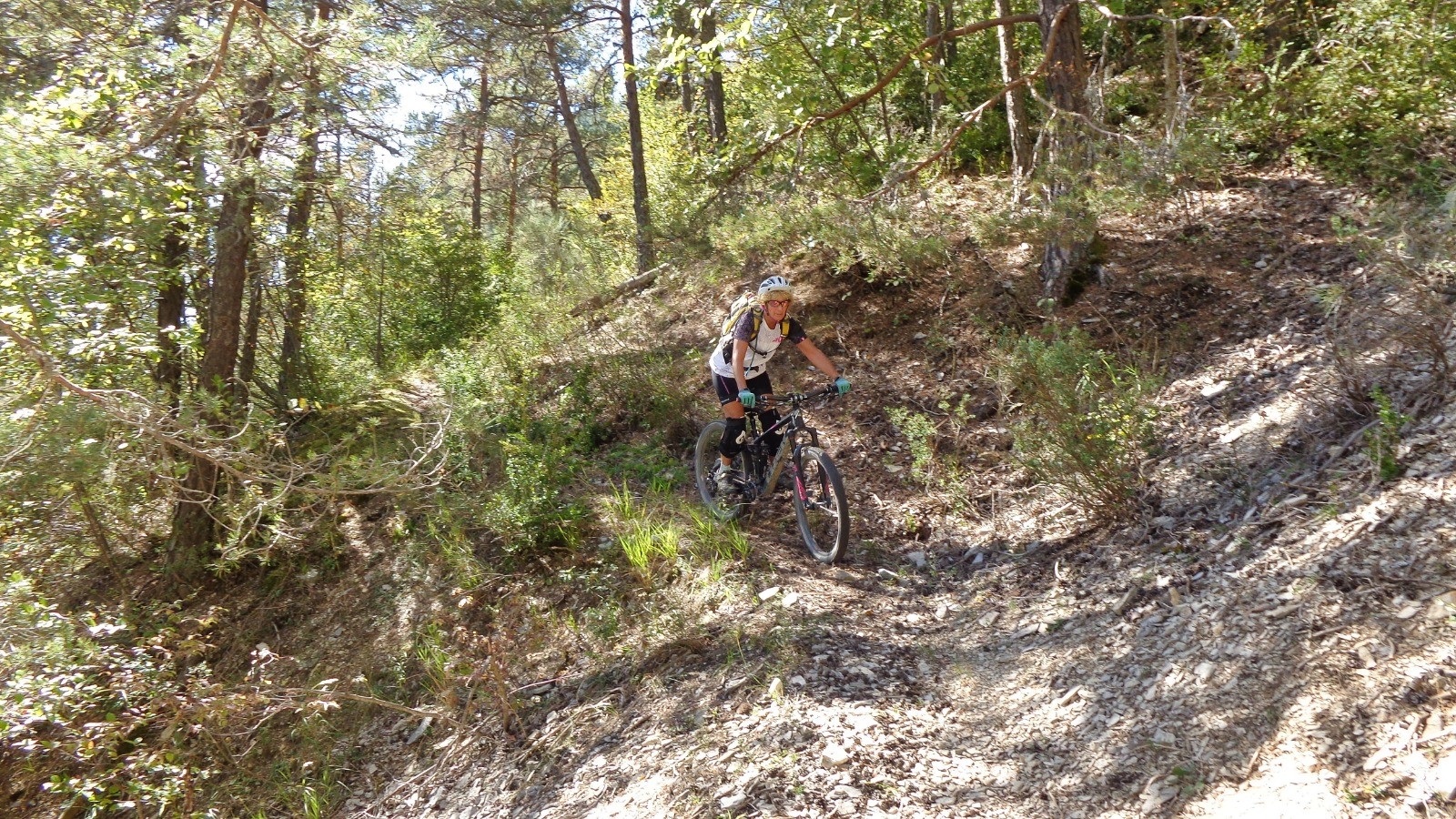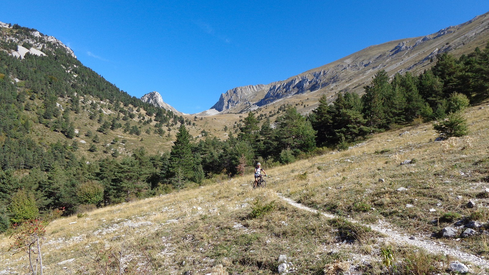 Jolie traversée du Col de la Peyère au Ravin de Castre, s'en suit le sentier de Serre rond bien délicat avec son cortège d'épingles plus ou moins difficiles, une descente étroite et pentue, recouverte de pommes de pin, bref un sol fuyant où le pilotage fino est de rigueur.
