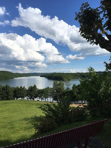 On continu par des chemins bien roulant jusqu'à Saint Etienne de Cantales ou l'on peut découvrir un beau panorama sur le Lac.