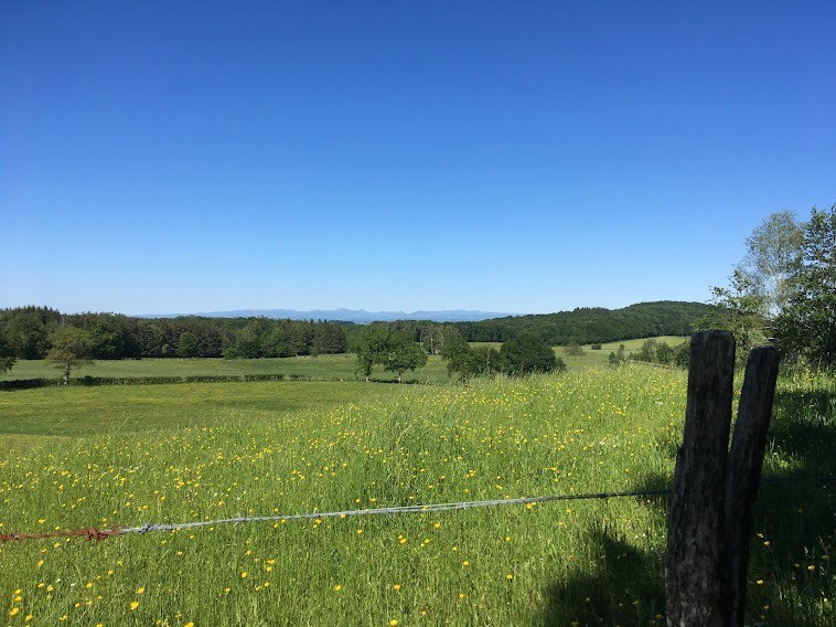 On attaque la plus longue monté du parcours jusqu'au relais, mais le point de vue sur les monts du Cantal sera une belle récompense.