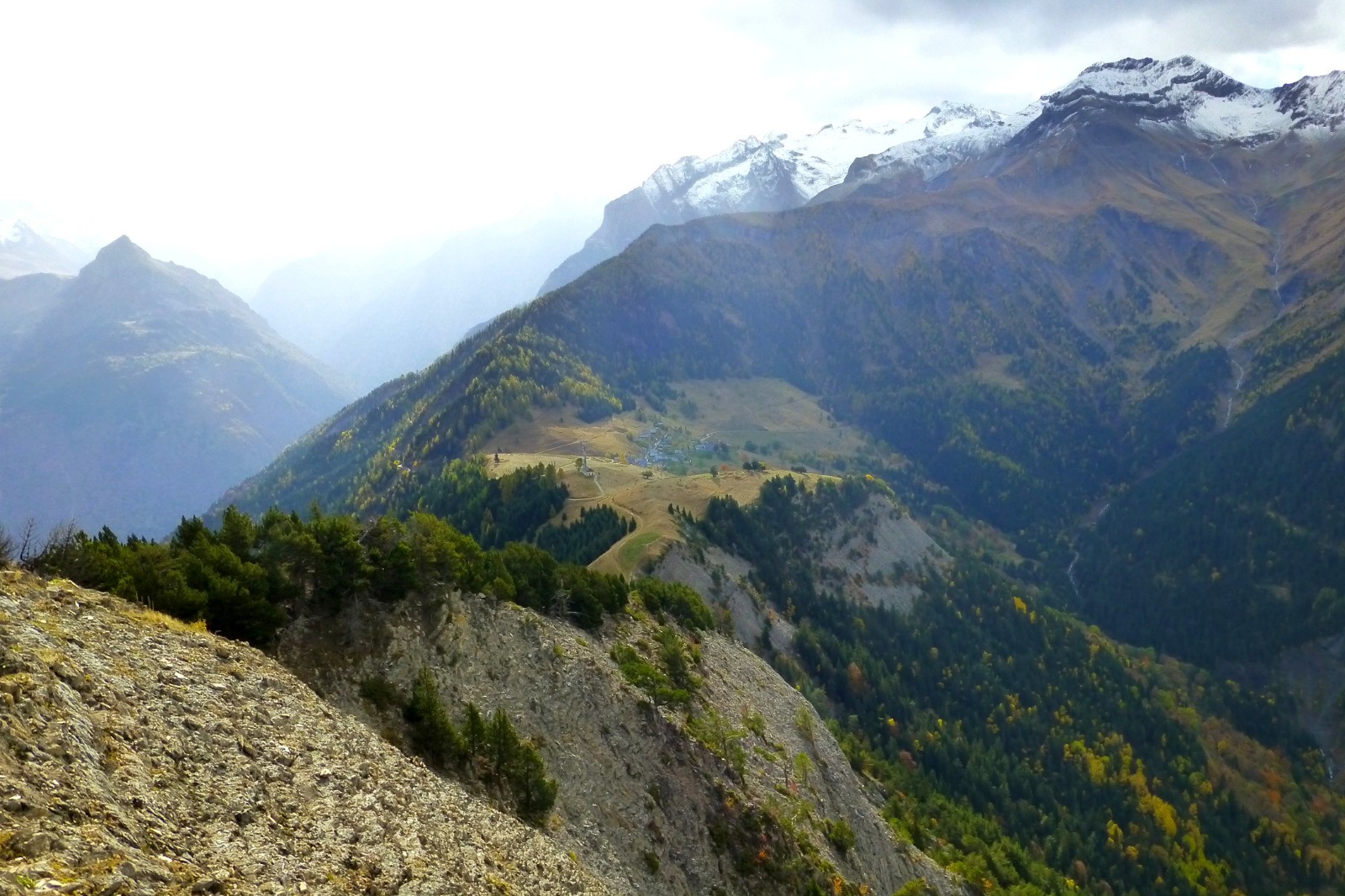 Le site de Prégentil est superbe : de beaux alpages parsemés de pins et de mélèzes où la vue sur tous les massifs environnants est splendide.