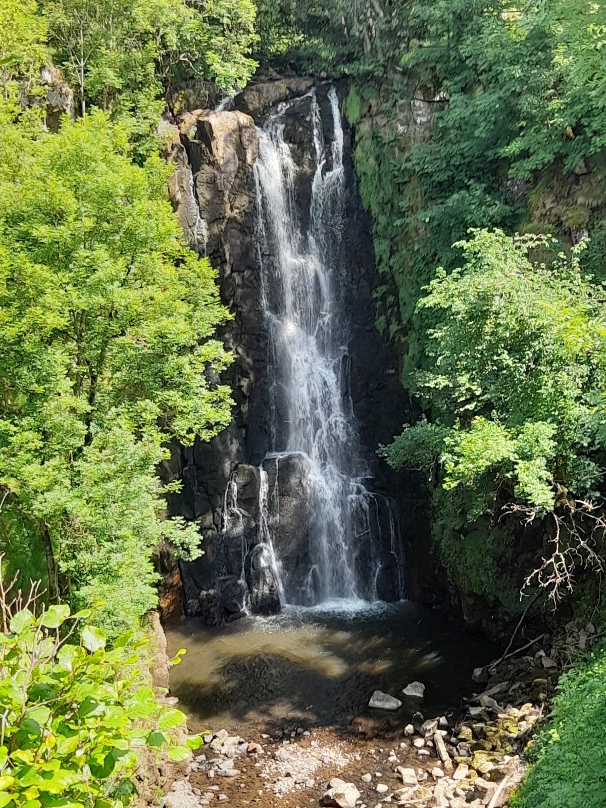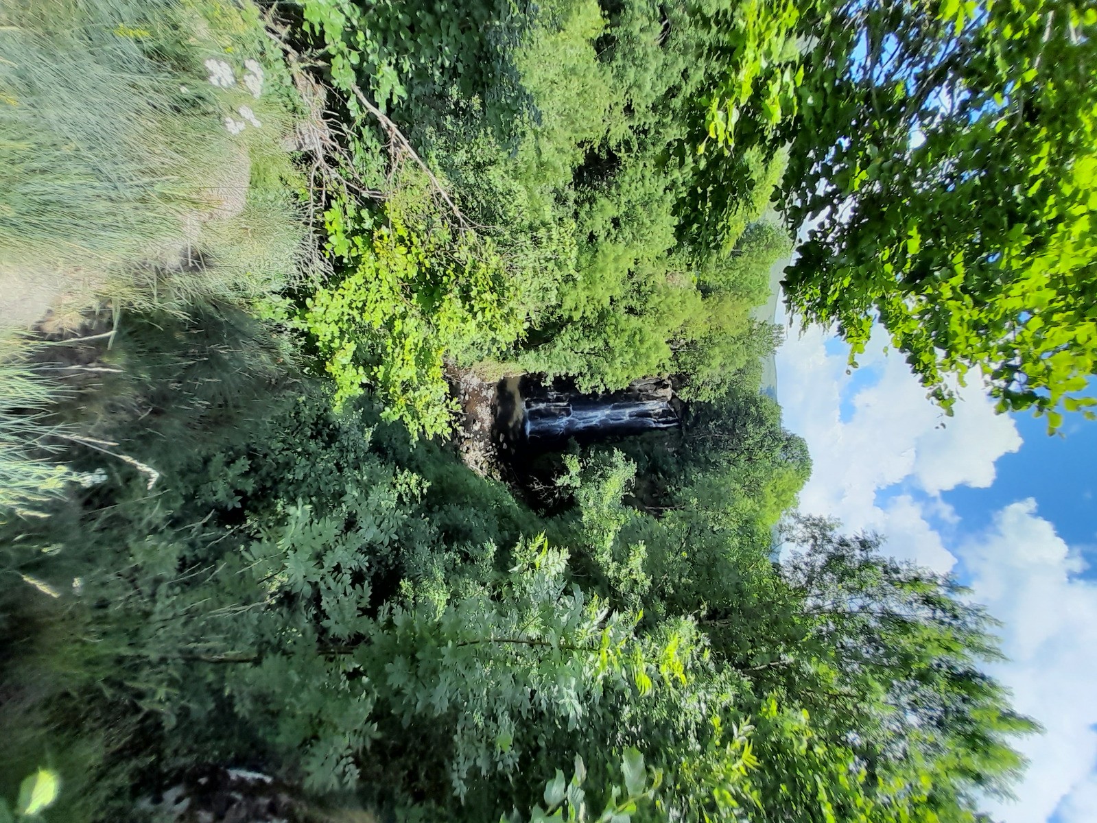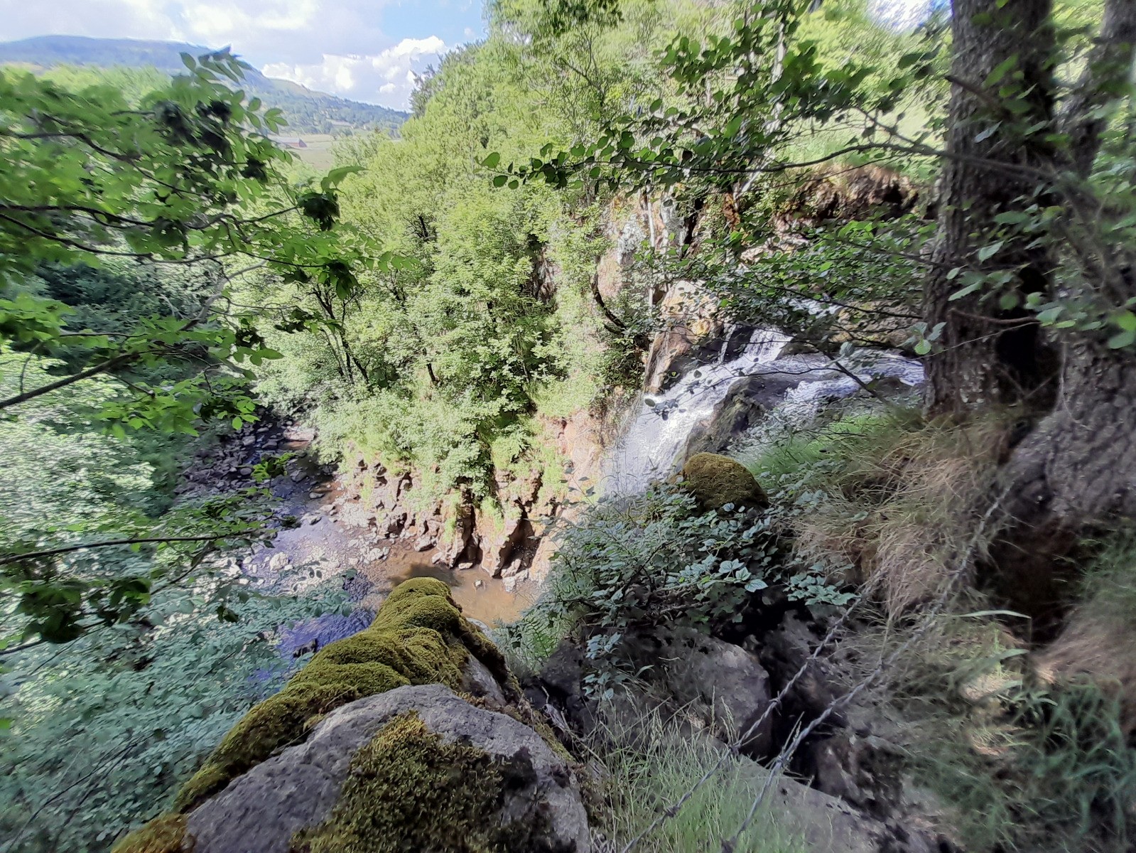 Bonjour, rentrait de la ballade du lac, quant j'ai aperçu le parking avec un panneau touristique. Bien m'en à pris, une belle cascade observable sur le promontoire aménagé. Bien failli passer à côté.