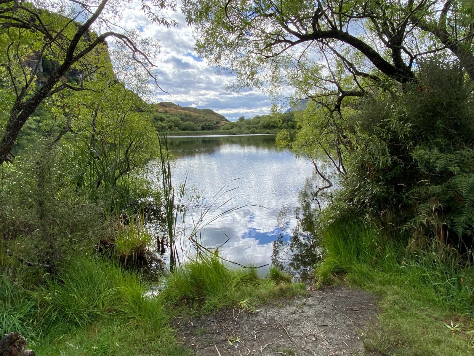 Nous suivons un sentier au milieu du bush et des arbres pour arriver devant le Diamond Lake..