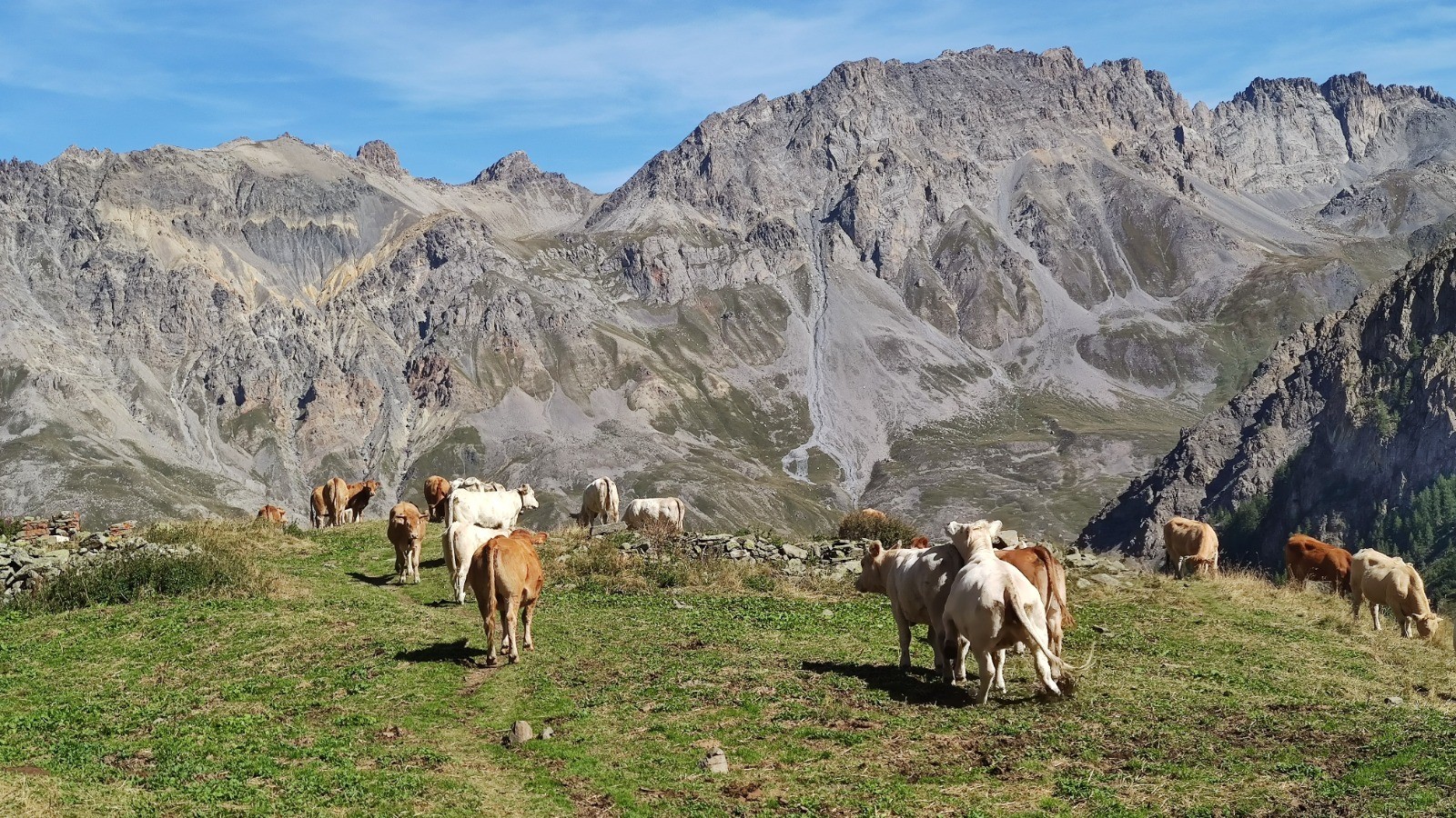 Il faut remonter dans un premier temps la vallon qui nous mène tranquillement au refuge des Aiguilles d'Arves (2260m). Là les choses sérieuses commencent. la pente va nettement se relever et au fil de la montée, la verdure va disparaître au profit des rochers. Heureusement dans de dédale de rochers, la trace est bien marquée de peinture.