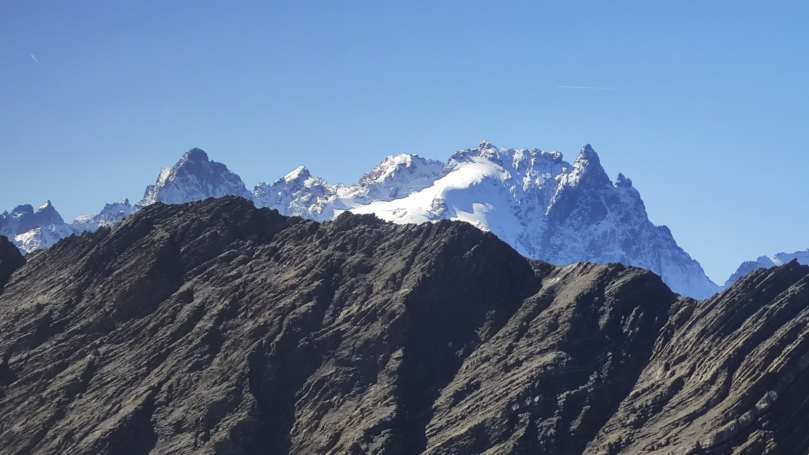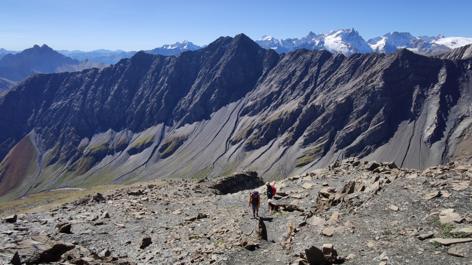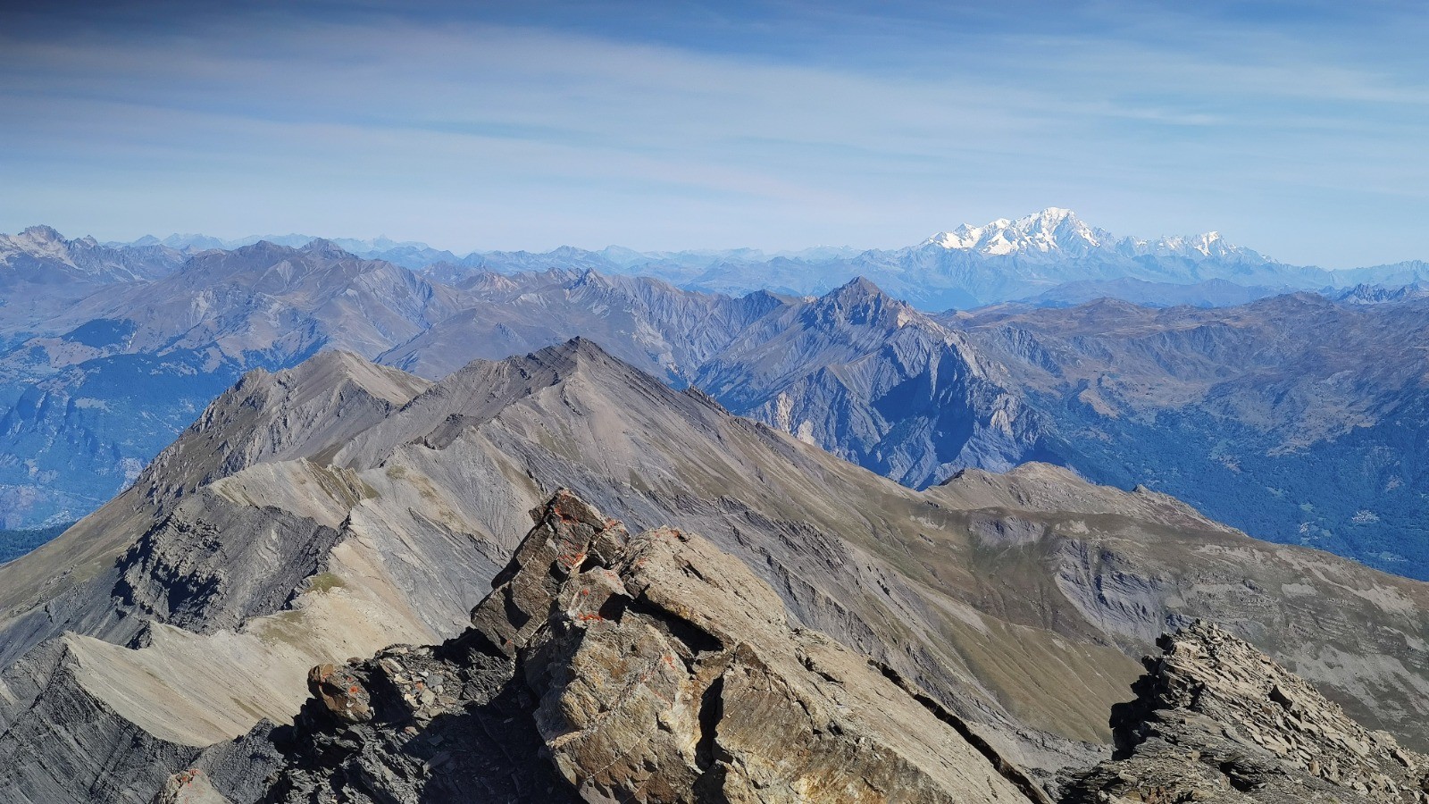 les efforts sont largement récompensés avec une vue de fou au sommet. Les Aiguilles d'Arves sont toute proche avec un angle de vue inhabituel. Fantastique.