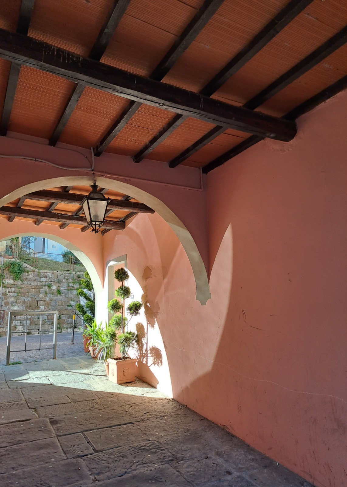Nous randonnons à travers bois et vignobles, admirant les demeures patriciennes de Vignano et Colognole, avant d'arriver à Greve in Chianti. Cette capitale de la région vinicole du "Chianti Classico" possède une superbe place triangulaire bordée de maisons à arcades.