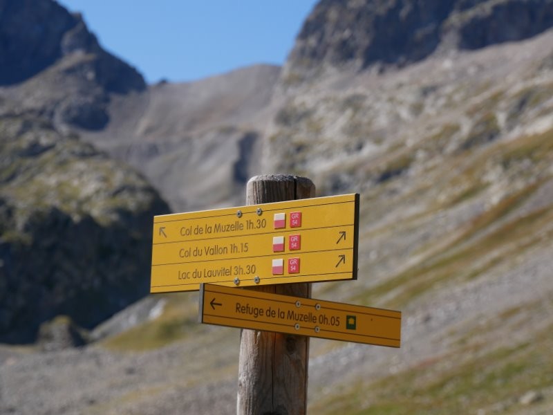 Montée : Longue montée jusqu'au refuge de la Muzelle 2120m. Après avoir longé le lac de la Muzelle, on oblique à droite jusqu'au col du Vallon 2540m, point culminant de la rando.