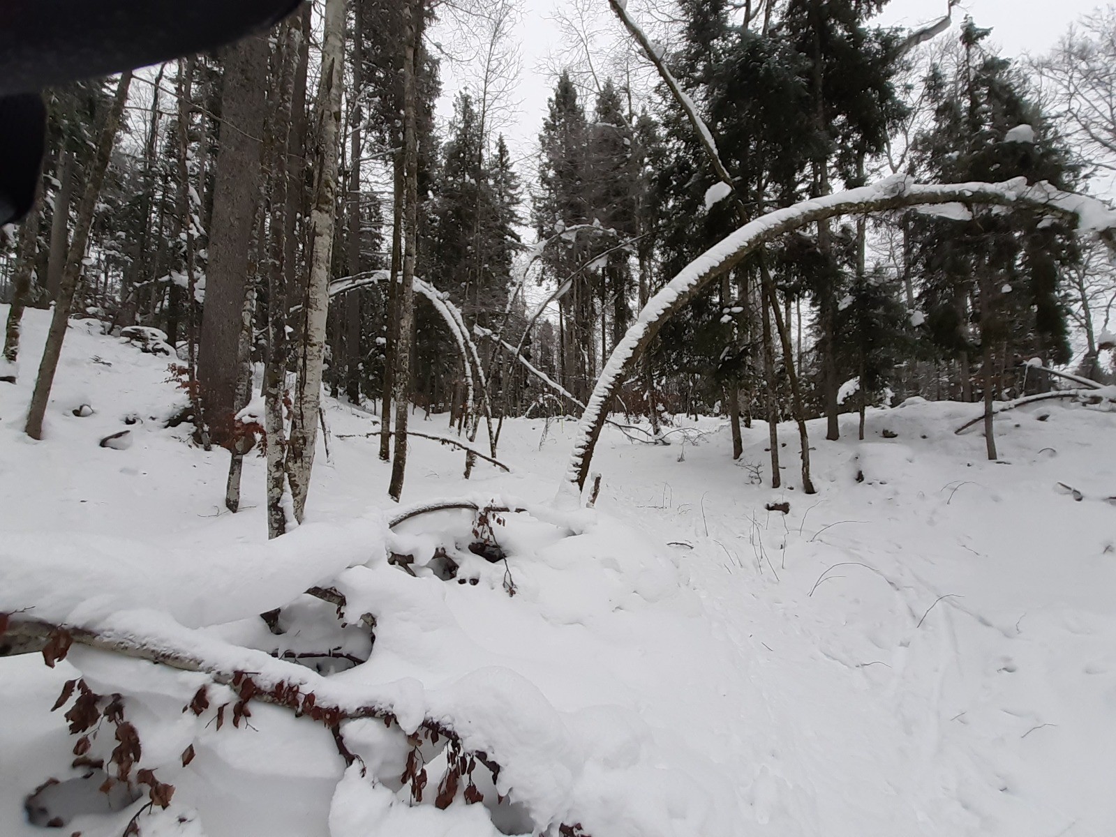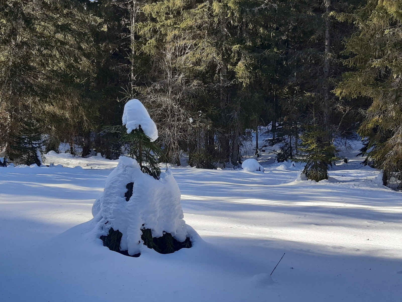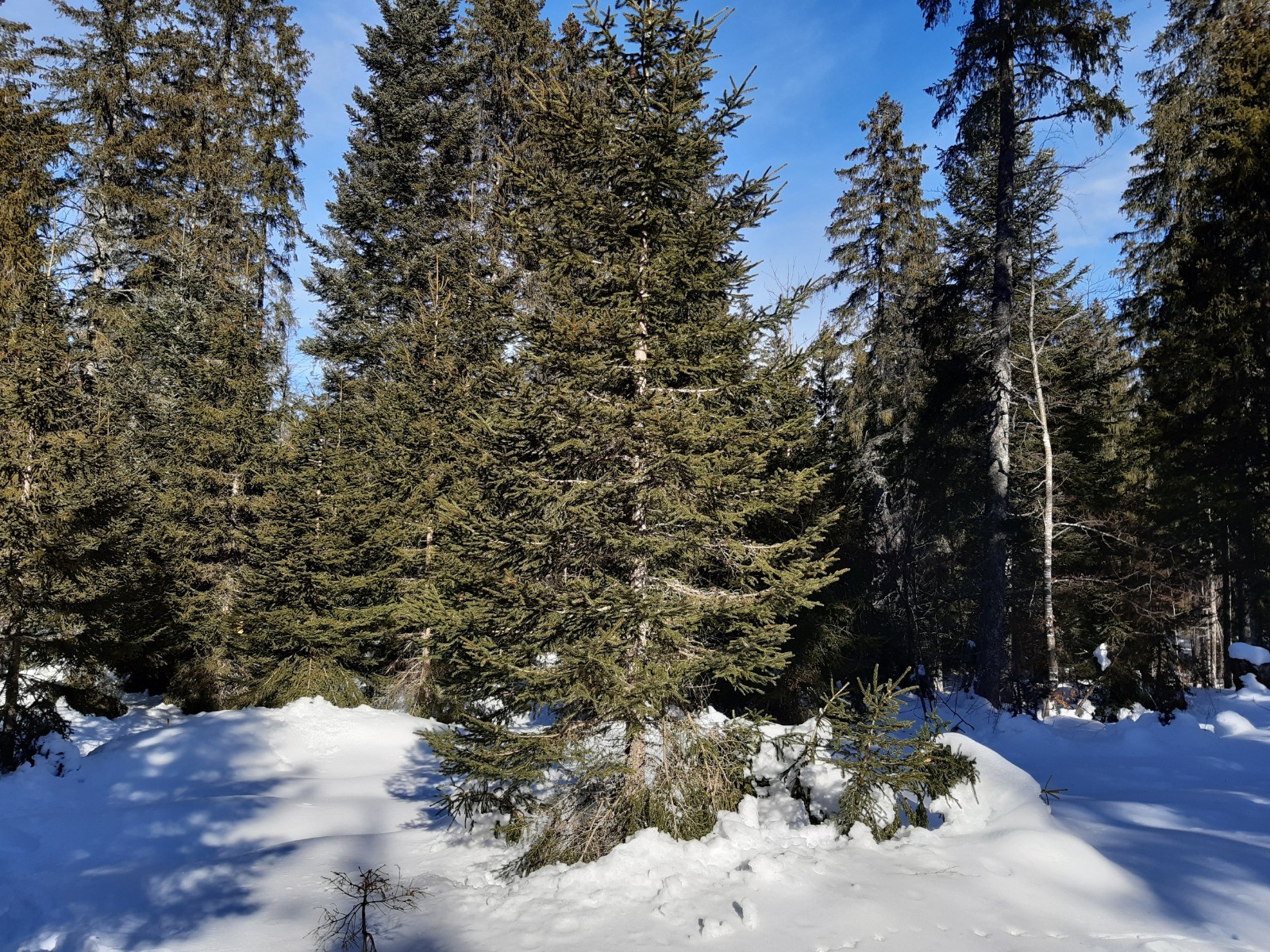 Nous sommes partis du P2, au Haut de la Combe, entre les Gentianes et le Glacier. Prendre la liaison entre la piste des Blanches et celle du Chalet Rouge. Après un peu plus de 2 km, on rejoint le point de vente des forfaits du Glacier. Emprunter la piste "les Bornes" qui monte dans la forêt en direction des Prés Hauts. Rester sur cette piste très bien balisée. Environ 1 km après avoir traversé la route, on arrive au croisement des pistes "Les Bornes" et "Le Chalet Rouge" : ne pas prendre la direction du P3 qui ramène au Glacier, mais continuer en tenant la droite sur la piste du "Chalet Rouge ". On rejoint 1,5 km plus loin la liaison 7 qui nous ramène au point de départ.