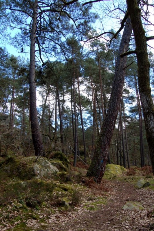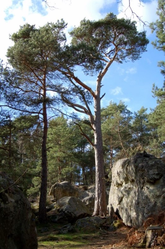 Balade au départ de la Plaine Verte sur le circuit 11 des sentiers de Denecourt, quelques passages etroits parmi les Pins Maritimes, des sylvestres, quleques pins noirs greffés et un sylvestre bizarement coudé, n'oubliez pas les grottes Beatrix et Kosciusko. Pour plus de renseignements sur les arbres et sur le sentier 11, reportez vous sur le site des Amis de la Foret de Fontainebleau.