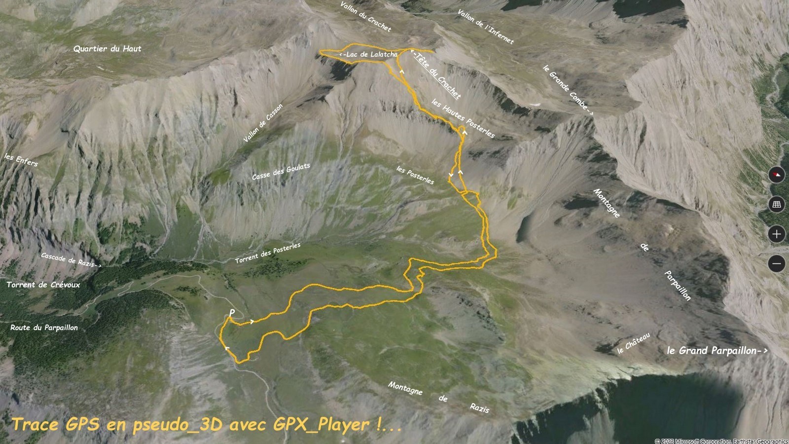 Tête du Crachet, 2919m, par les 2 rives des Torrents de Crévoux et des Posterles, les Posterles & les Hautes Posterles, retour par le tour du vallon & Lac de Lalatcha , depuis l'épingle à 2230m / Route du Parpaillon / Croix de Razis, Crévoux, 05.Randonnée PédestreTrace cachée