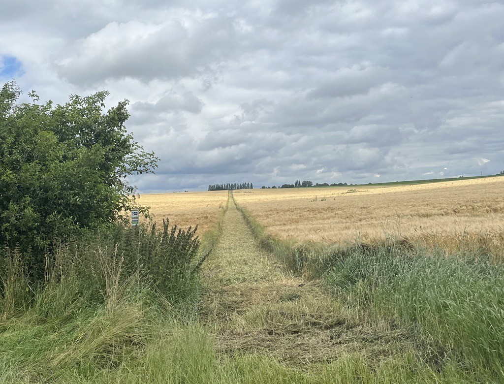 Après la traversée de la chaussée, soyez vigilant, en haut du champs vous apercevrez peut être un rapace installé sur son perchoir. Le chemin emprunté est un chemin public retracé par l'agriculteur. N'hésitez pas à l'emprunter, vous participerez à sa préservation.
