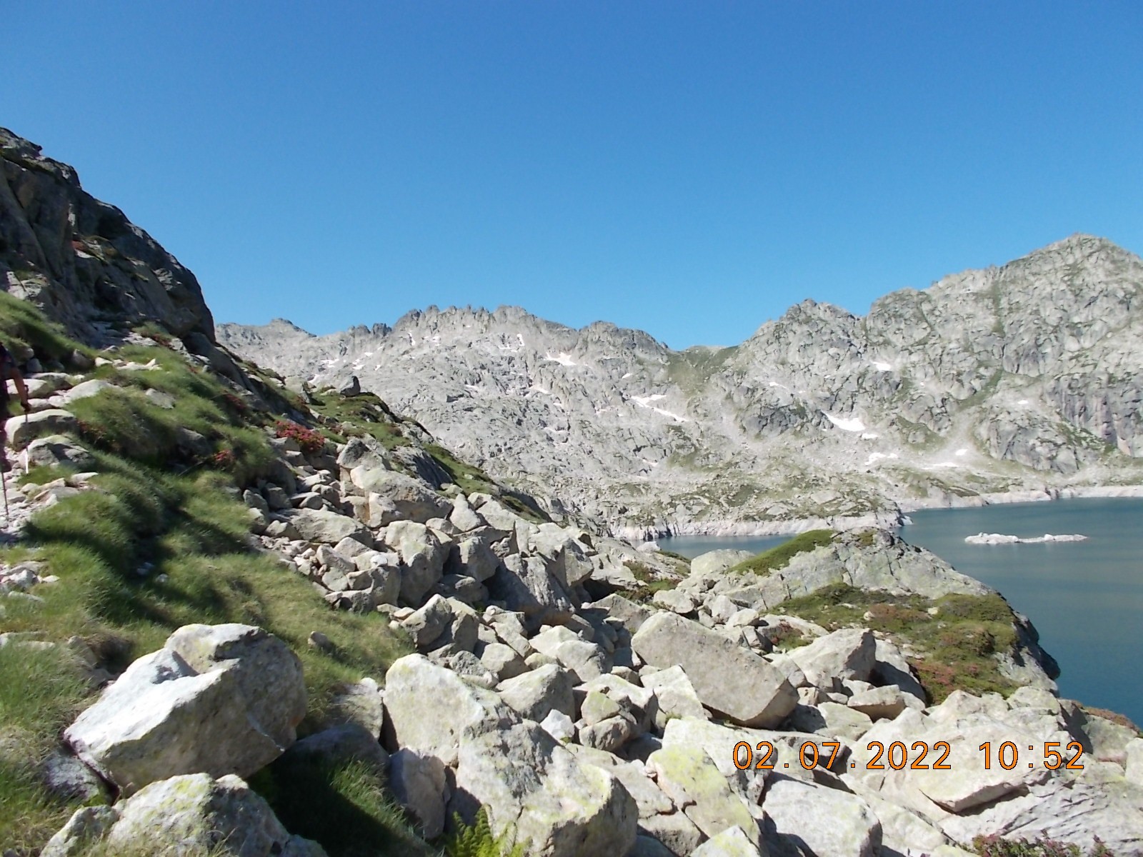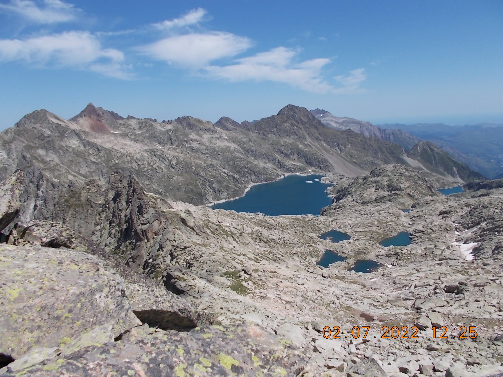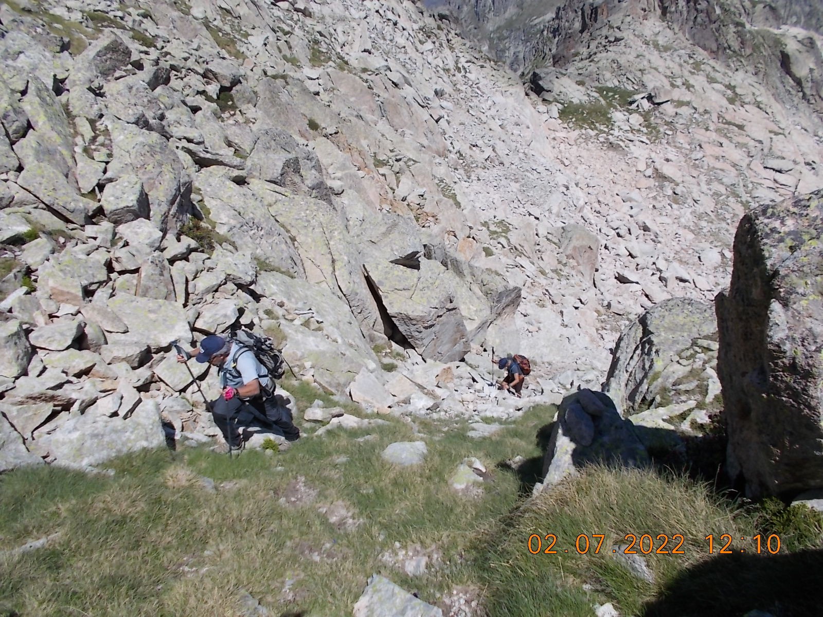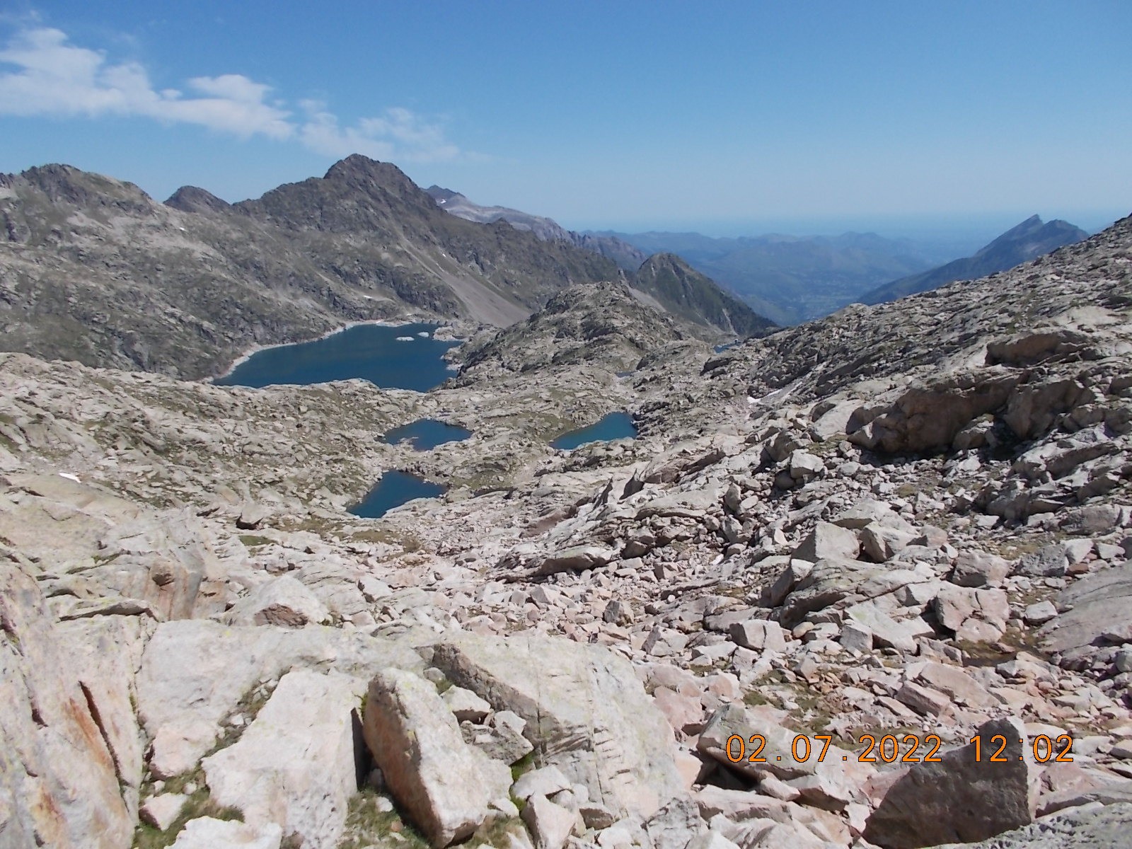 Arrivé à l'extrémité du Lac, laisser le sentier du col à droite, et filer plein sud, en suivant les cairns, vers les Lacs de Lacarrats et ensuite le sommet du Batboucou, en point de mire constamment, sur de gros blocs.