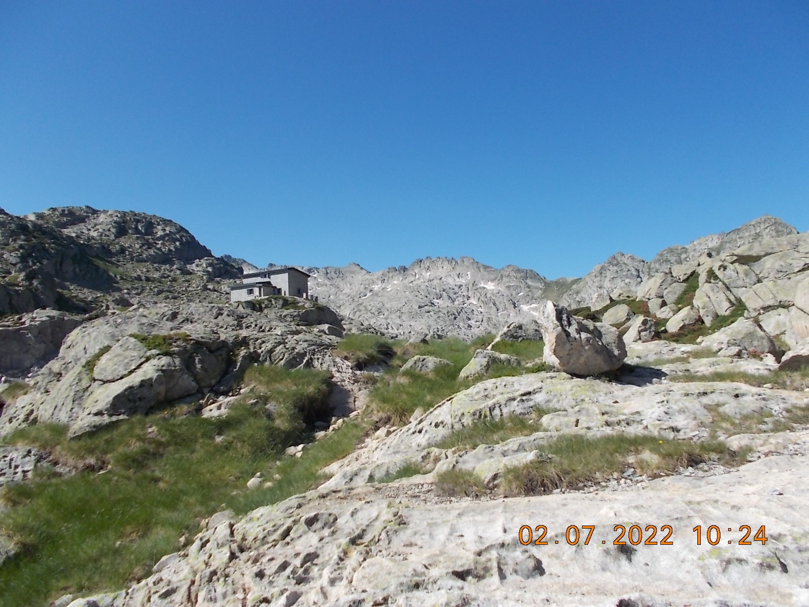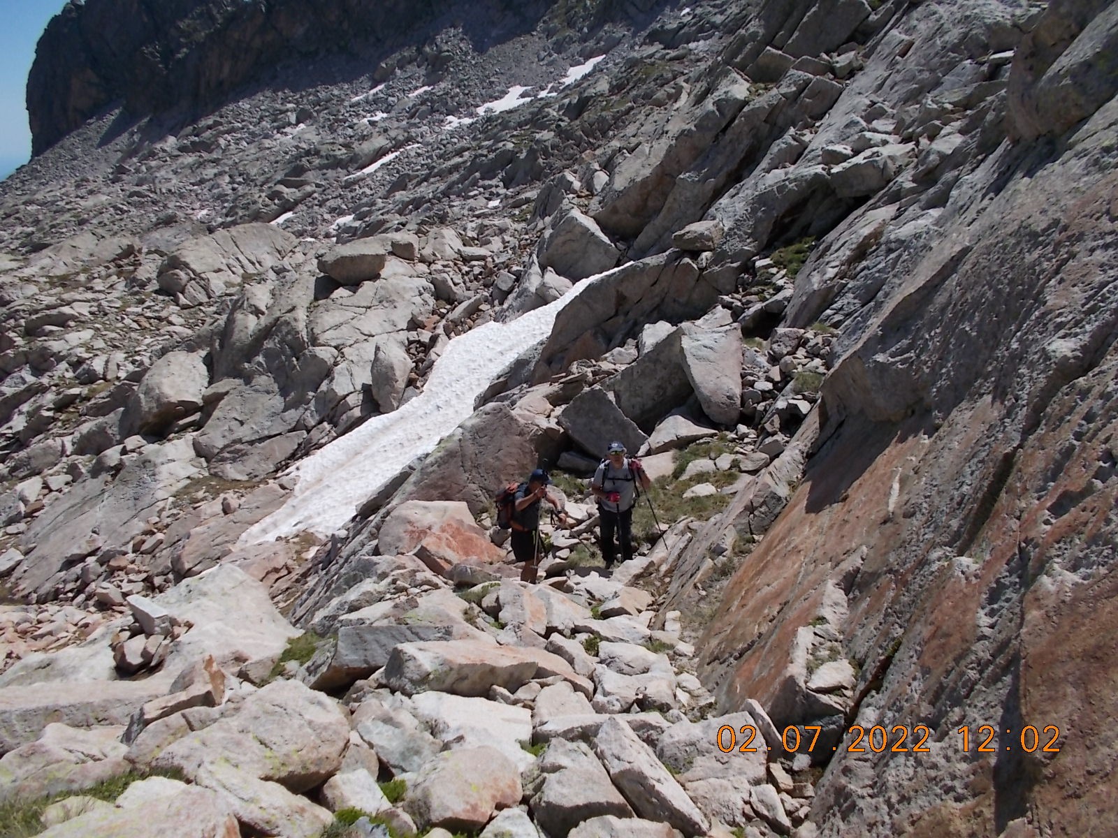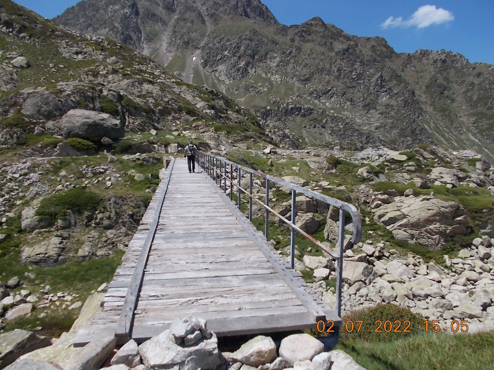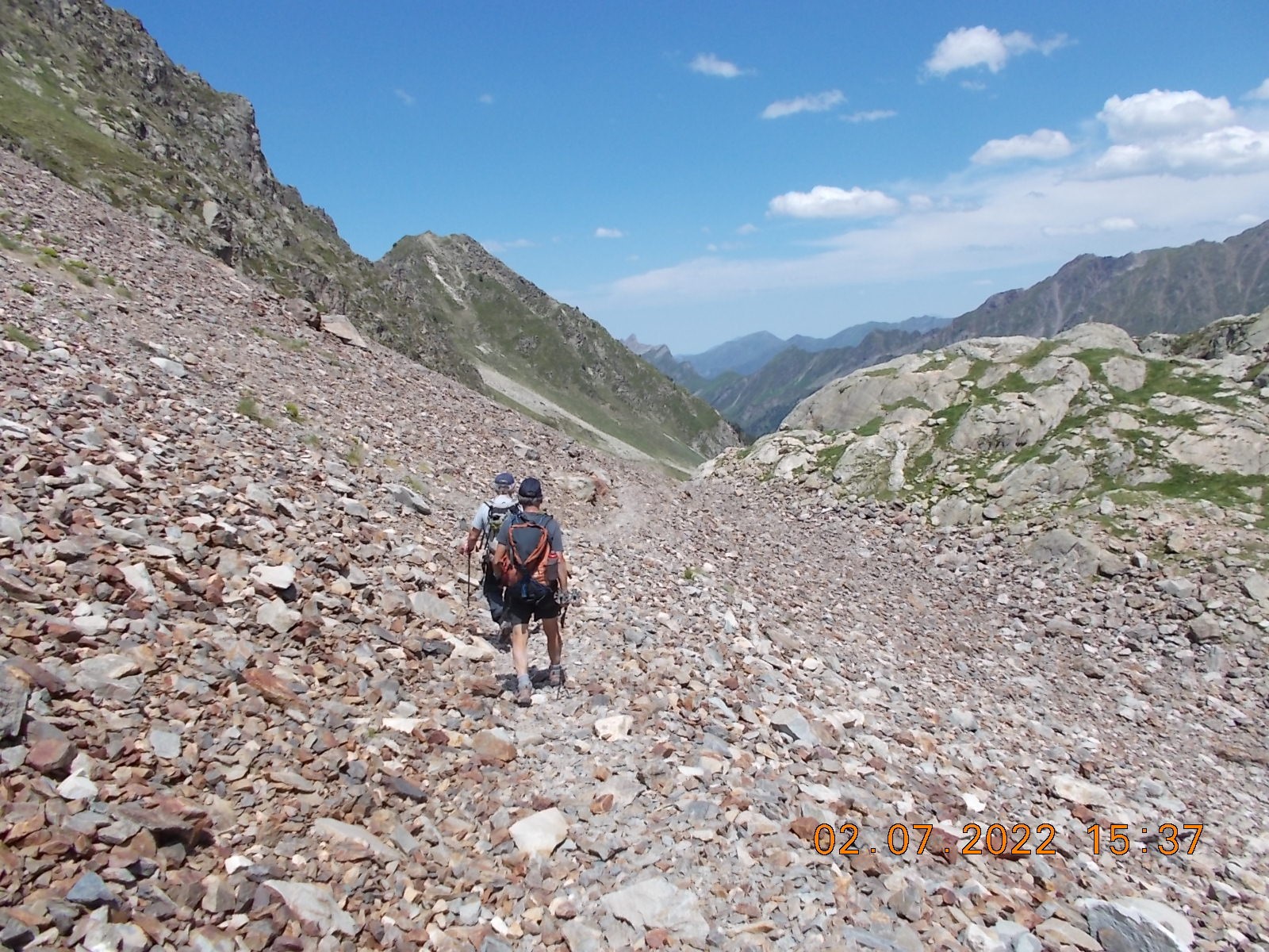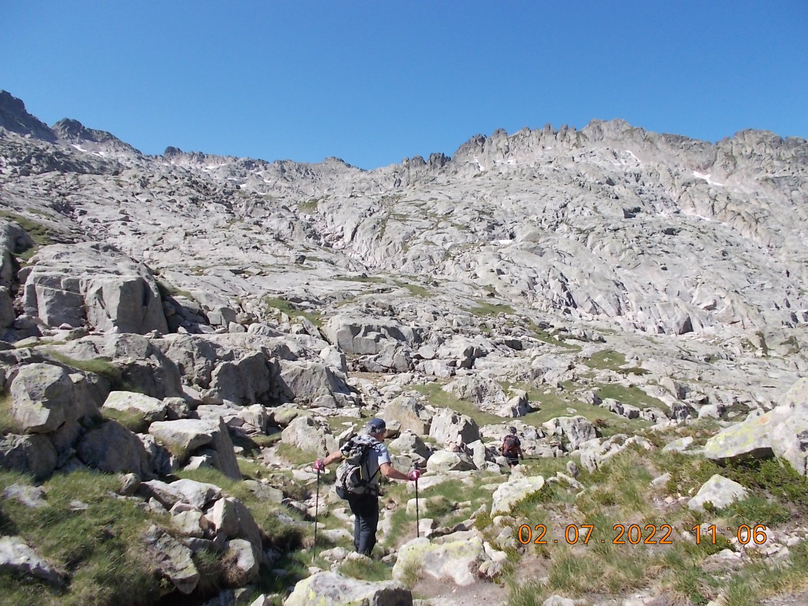 Arrivé à l'extrémité du Lac, laisser le sentier du col à droite, et filer plein sud, en suivant les cairns, vers les Lacs de Lacarrats et ensuite le sommet du Batboucou, en point de mire constamment, sur de gros blocs.