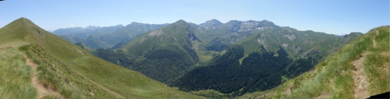 Départ du parking de la route forestière de Rouech ( vallée de St-Lary 09 ). Montée par la cabane des barguerases et le col de l'herbe soulette. Retour par les cols de la calabasse et d'osquet, descente sous le pic de Paumade, et retour par la cabane de Loubères.