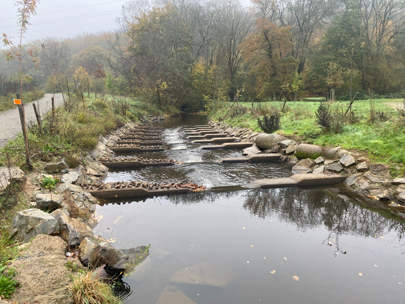 Et un kilomètre plus loin nous voilà au bord du Cens. ( trois kilomètres de berges ) et nous le retrouverons kilomètre 12 . La vallée est présentée comme une vraie “coulée verte” au cœur de l’agglomération nantaise, traversant Orvault et reliant différents quartiers.