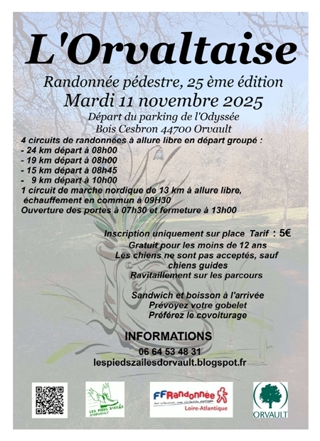 4 circuits sont proposés : 9, 15, 19 & 24 kms et 1 circuit de marche nordique de 13 kms. à Orvault