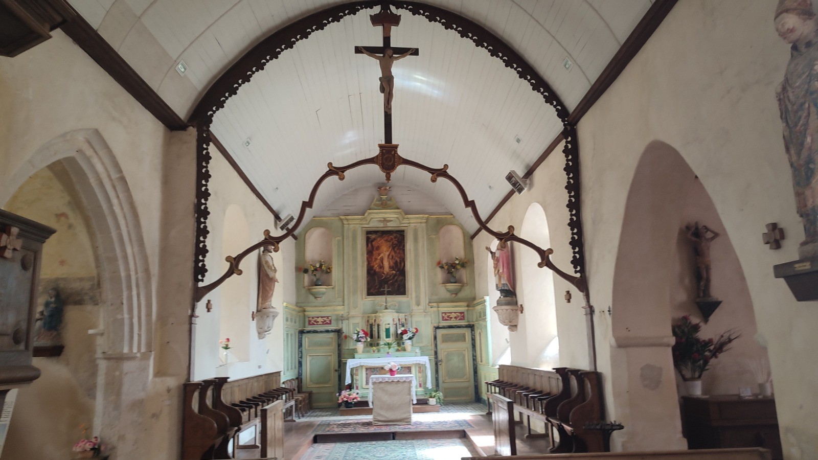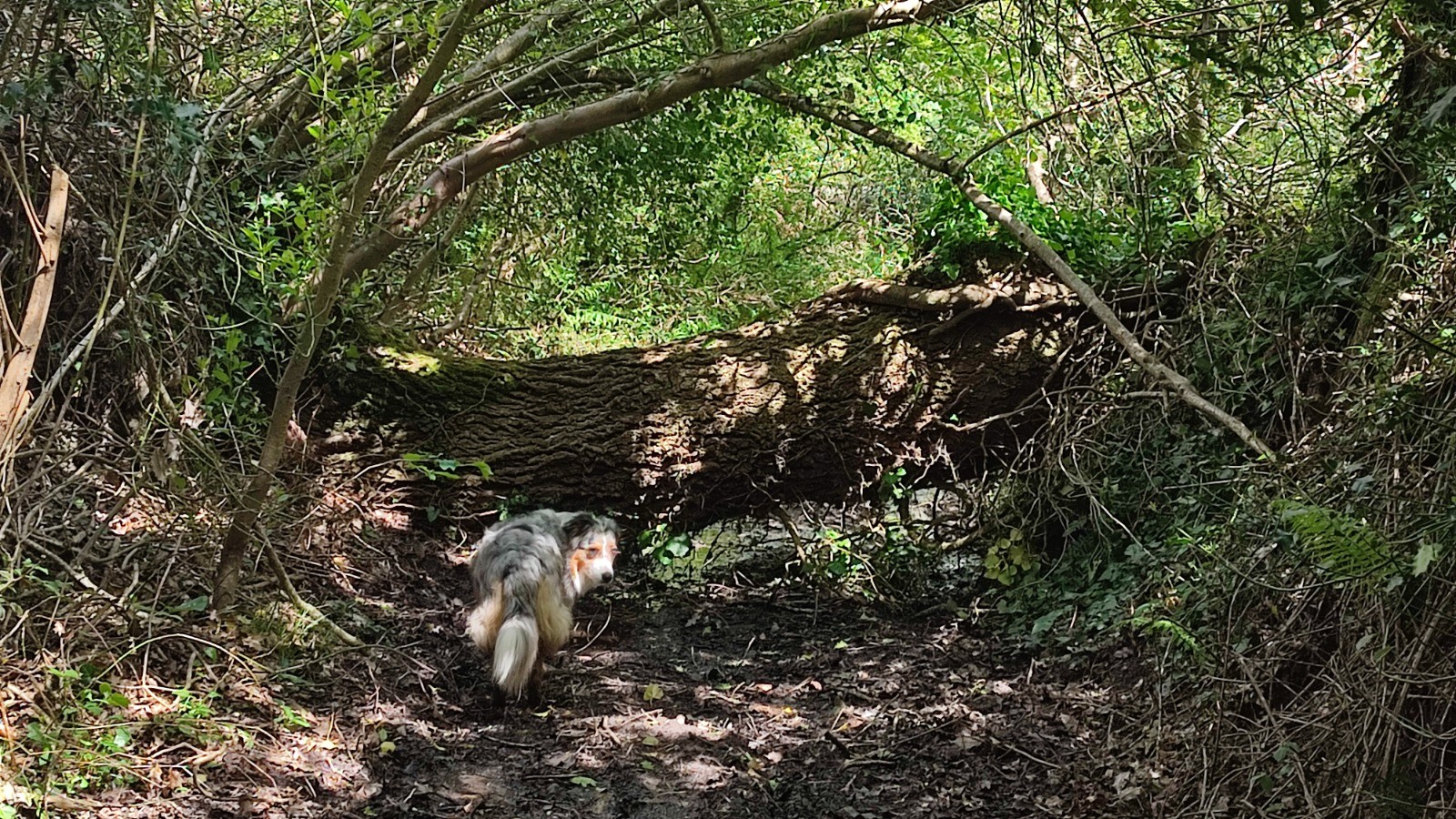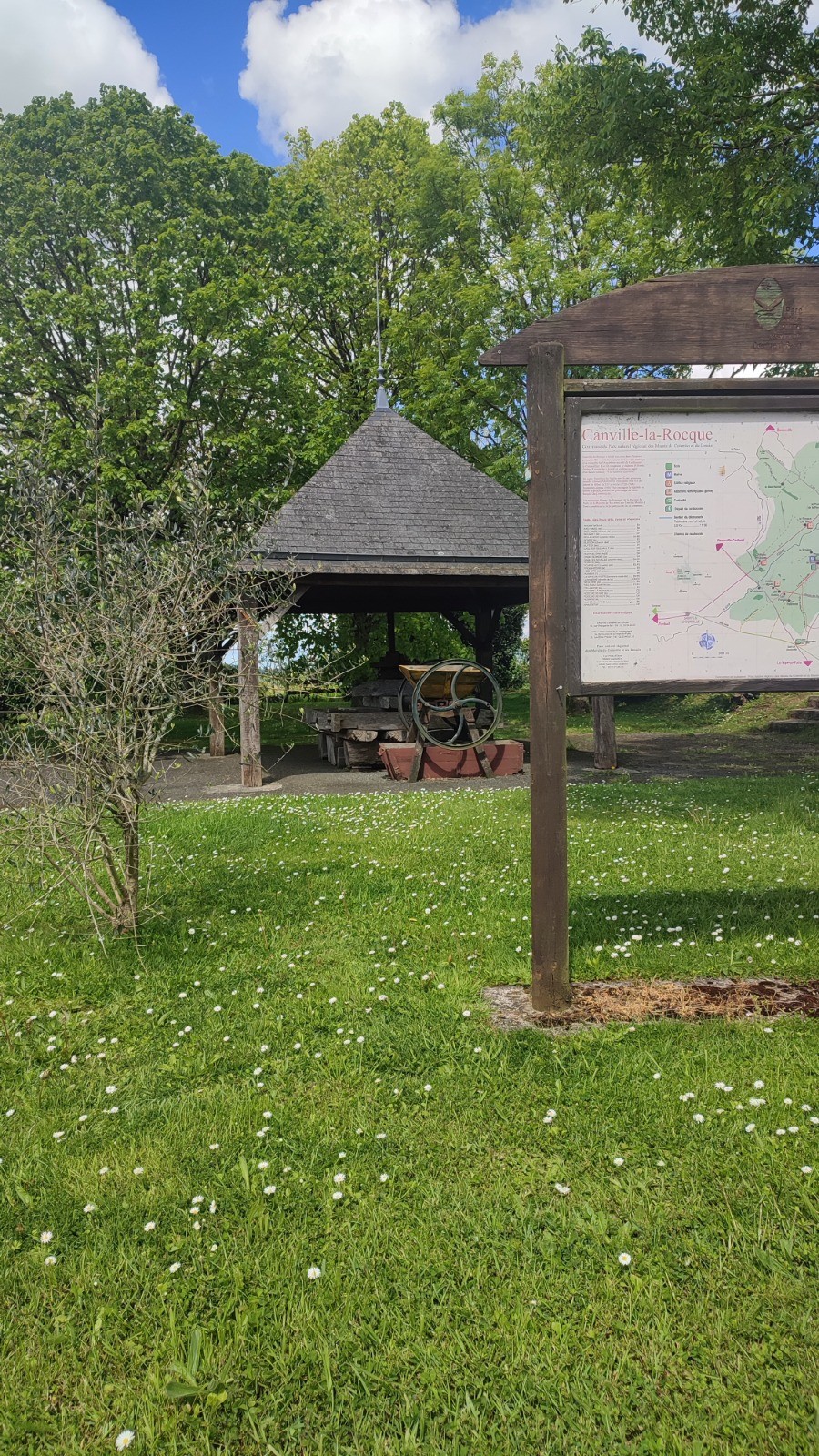 Du moins : jusqu'à l'église de Canville et ses fresques, tout va très bien madame la Marquise. Les emm... commencent lorsqu'on sort des chemin goudronnés ... à la Sivarderie pour moi ! cassé la figure un peu salement (une jambe dans la rigole, l'autre prisonnière d'une ronce derrière et plus haut, les deux mains dans les orties et les ronces, un bâton de marche faussé en tentant de sortir de là ... bref : le début de la gadoue ou l'on ne peut passer que par les champs de gauche ou de droite mais en grimpant et en forçant le passage au travers ronces, aubépines et orties quitte à recommencer en descente peu de temps après : l;horreur en cette saison et je n'ose imaginer à quoi cela ressemble en hiver ... sans compter la tempête qui est passée par là depuis Aout l'année dernière rendant certains tronçons aussi infranchissables que les étangs de gadoue !