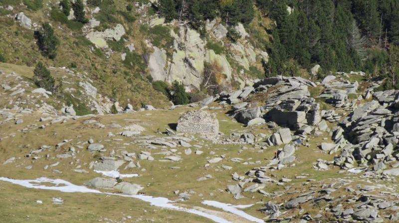 Au Coll del Pal on trouve la borne frontière 513 et un autre repère pour le méridien de Paris. Le bon repère est la petite borne noire.