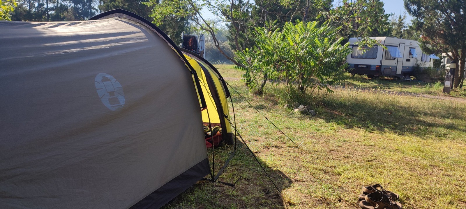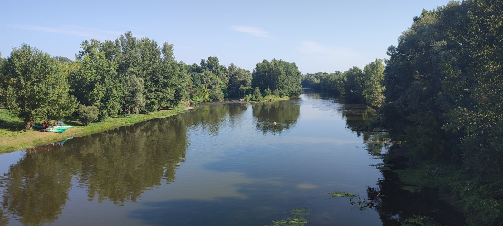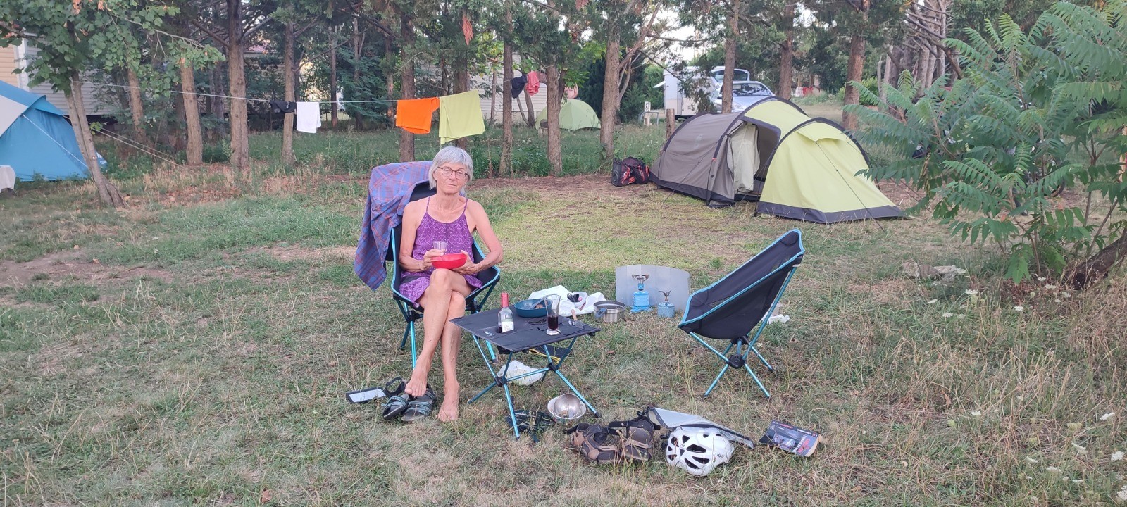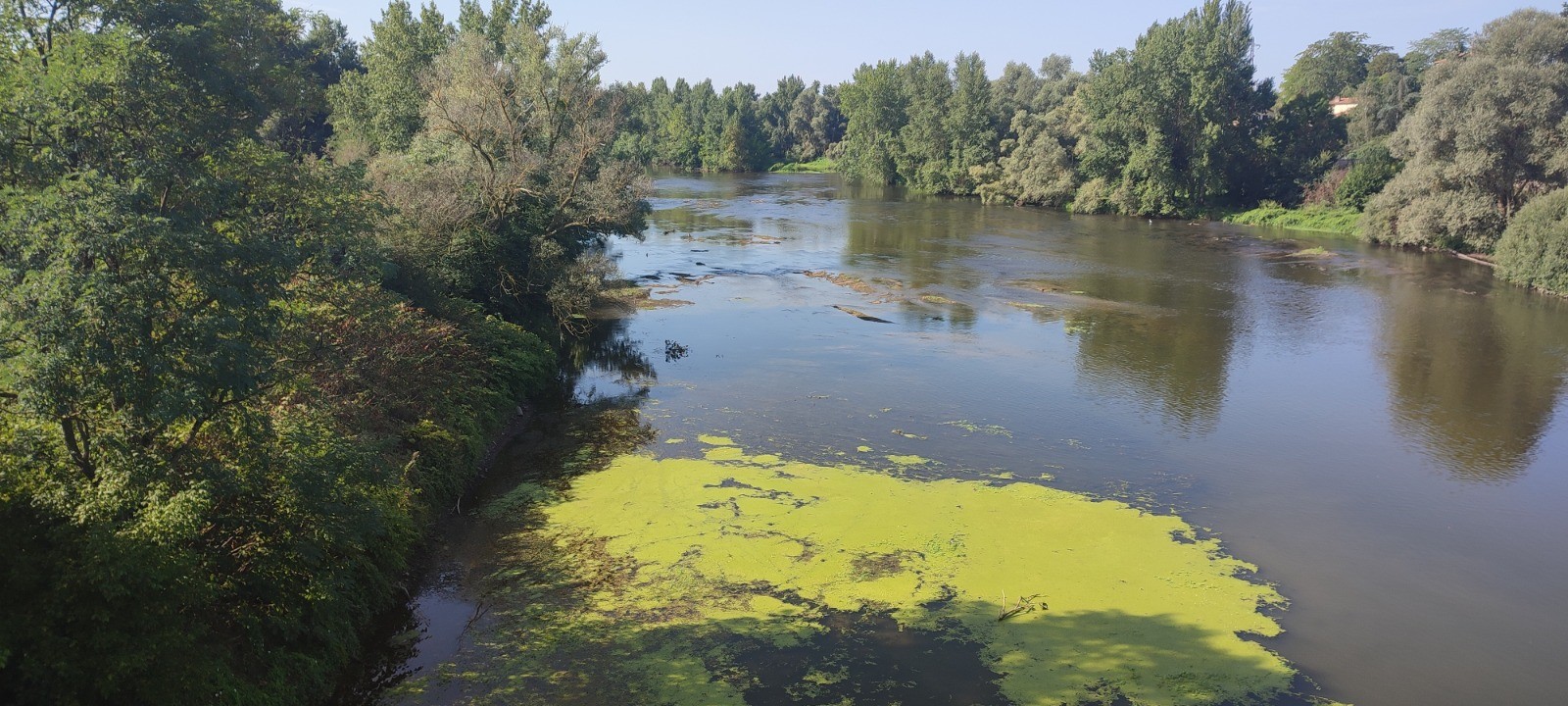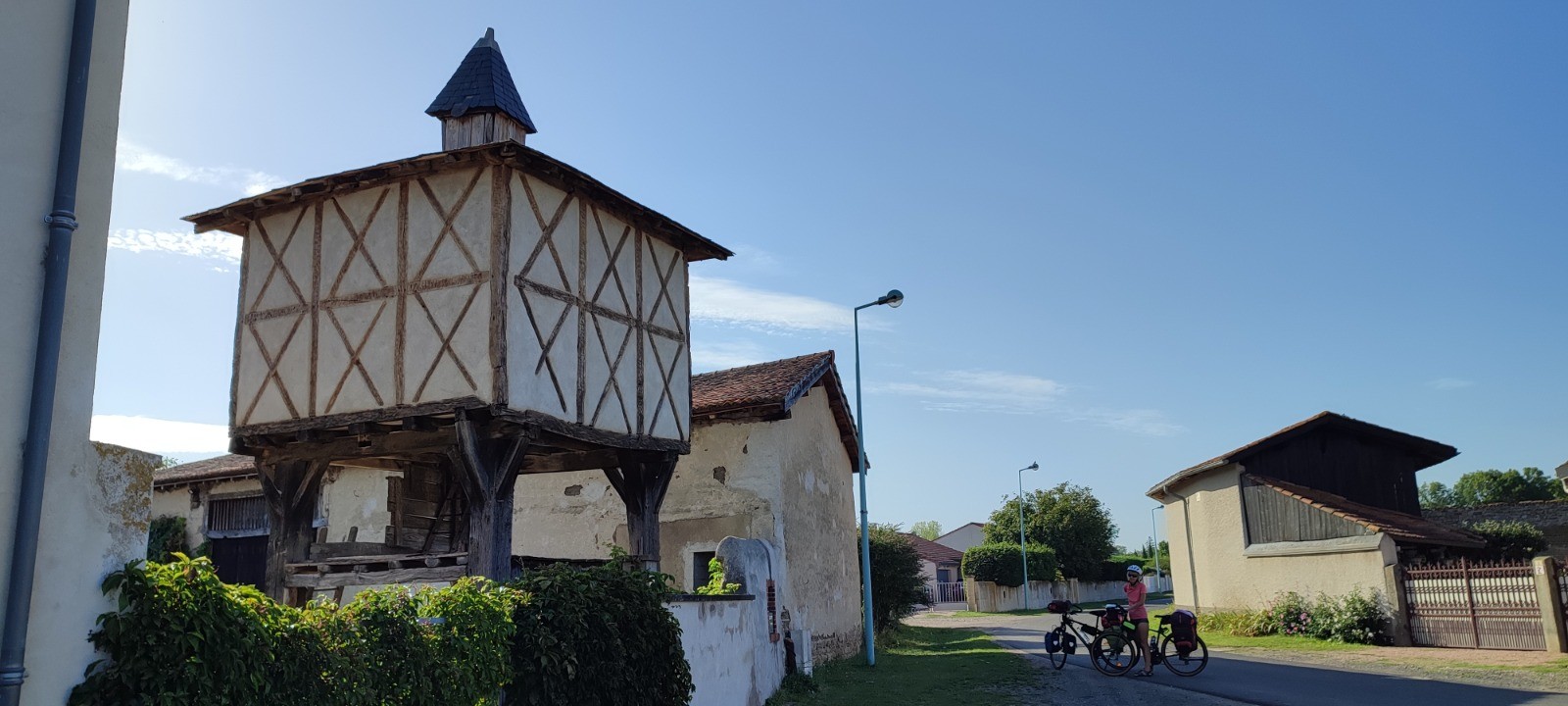 Après nous nous filons à geovelo pour aller au camping prévu. Bon des ponts coupés font que l'on va rouler sur des routes très passantes. La chaleur grimpe et nous arrivons en nage juste avant Vic-Le-Conte au çamping un peu strange visé. Encore un camping différent. Plutôt zone, travailleur sans rien. Tant mieux. Mais bon chaleur.