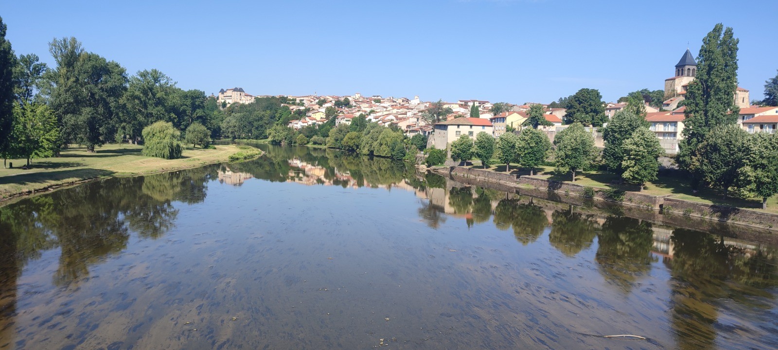Partir tôt par les chaleurs qui croissent, c'est bien. Nous arrivons vite à Pont-du-Château, ou nous faisons qq courses pour le soir.