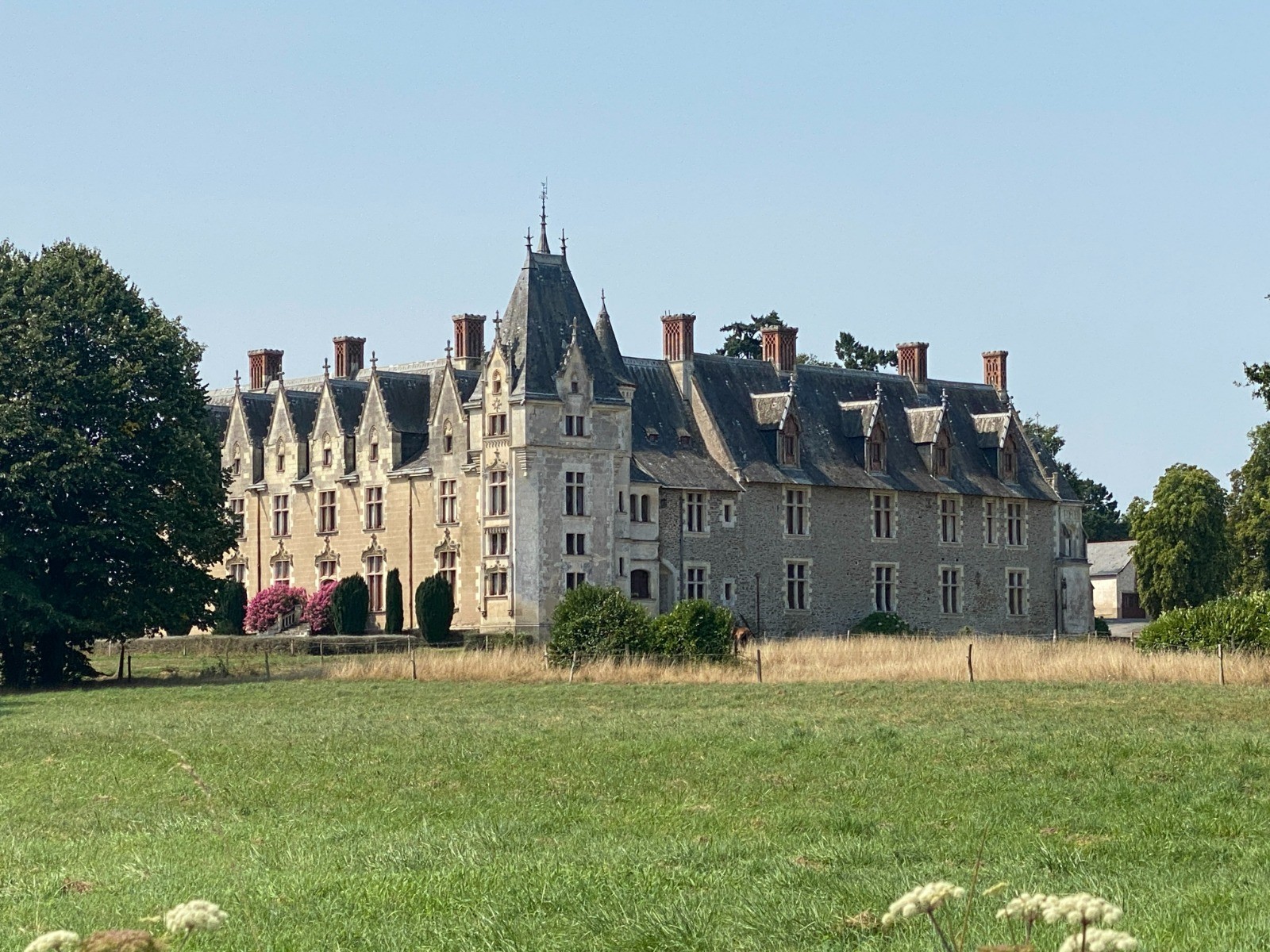 Plus loin, apparaît le château de la Gâcherie, une propriété privée mais visible depuis le chemin, avec ses pierres blondes et son allure de manoir romantique.