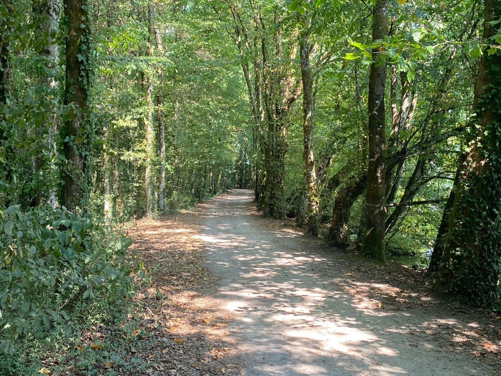 Le chemin boisé offre beaucoup d'ombre et laisse entrevoir ici et là cette large rivière, coin assez idyllique de Loire-Atlantique. Ici, la rivière serpente tranquillement entre prairies, petits bois et coteaux, créant une atmosphère très paisible.