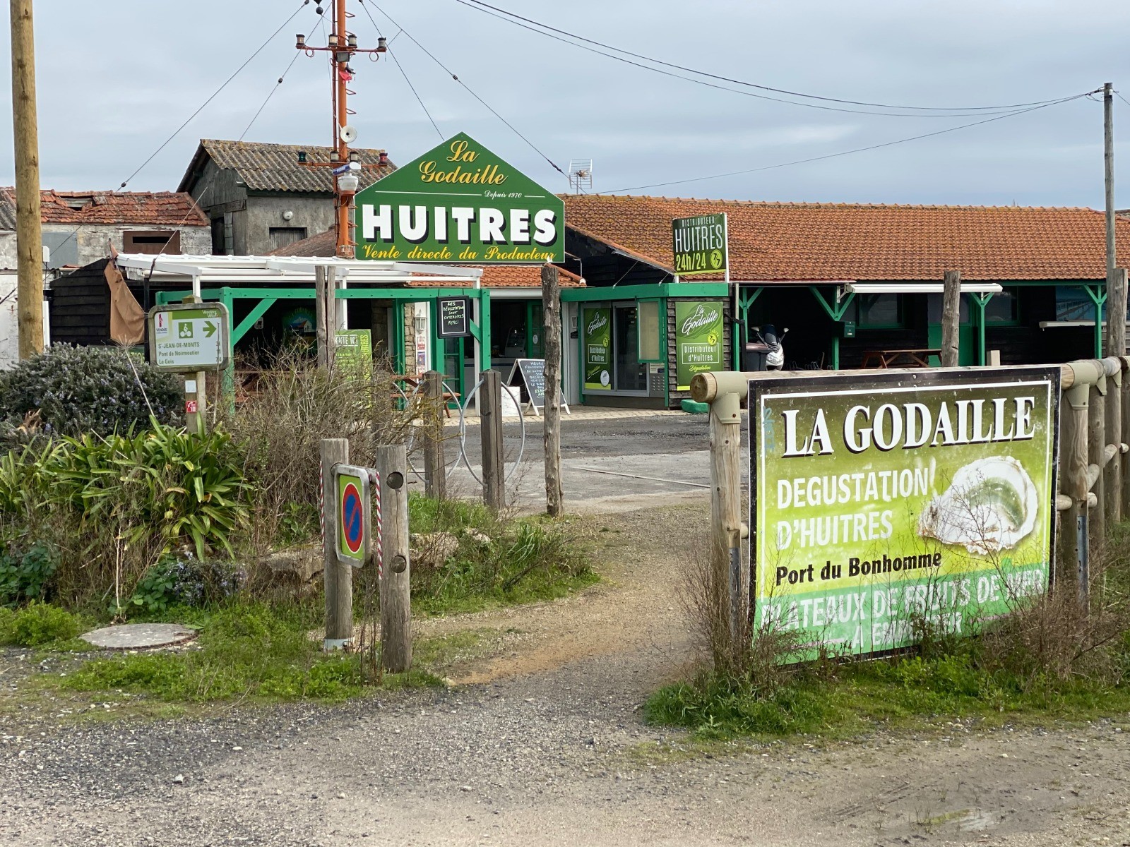 Le port du Bonhomme c'est une poignée de cabanes ostréicoles, dont certaines devenues des points de vente et de dégustation, une cale d'accès à la mer, le passage de la piste cyclable qui borde la digue, le tout rythmé par le va-et-vient d'attelages de bateaux plats, appelées « plates » ou « lasses ».