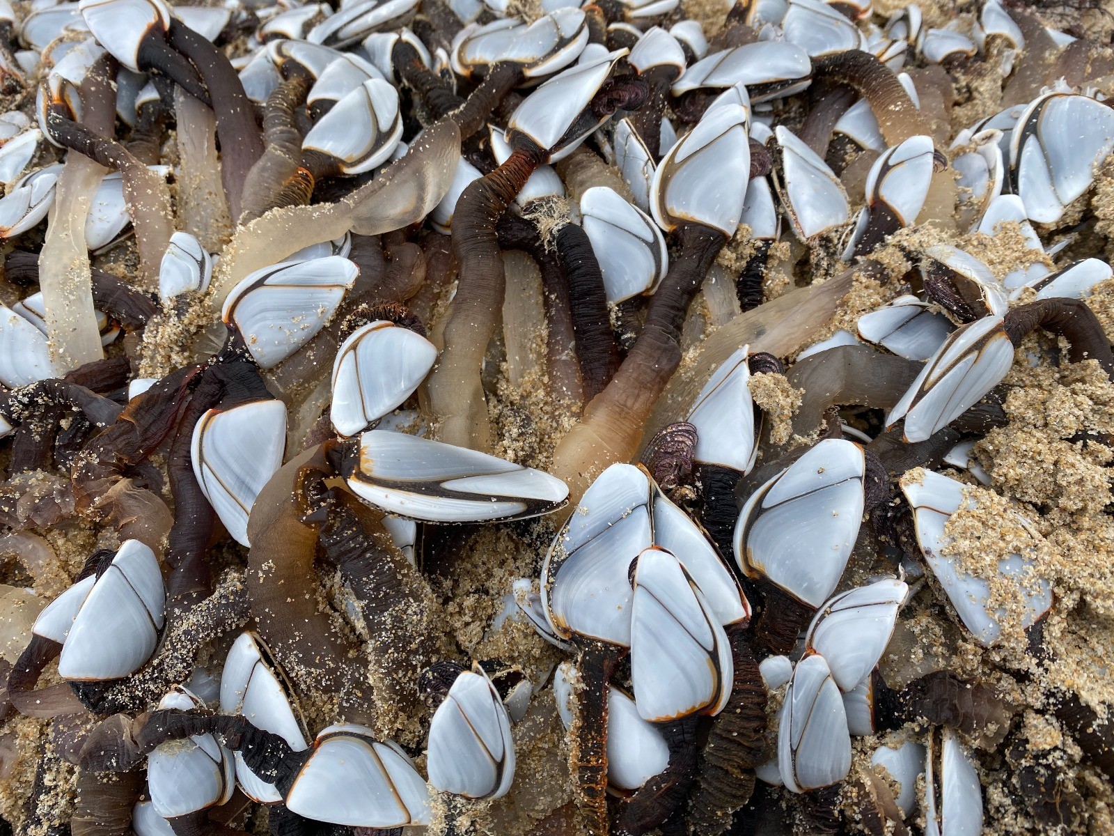 Sur la plage une grosse bille de bois était recouverte d'un coquillage nommé "anatife" ou "pouce-pied" ( voir photo ).