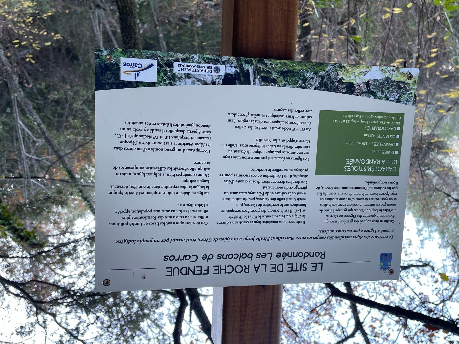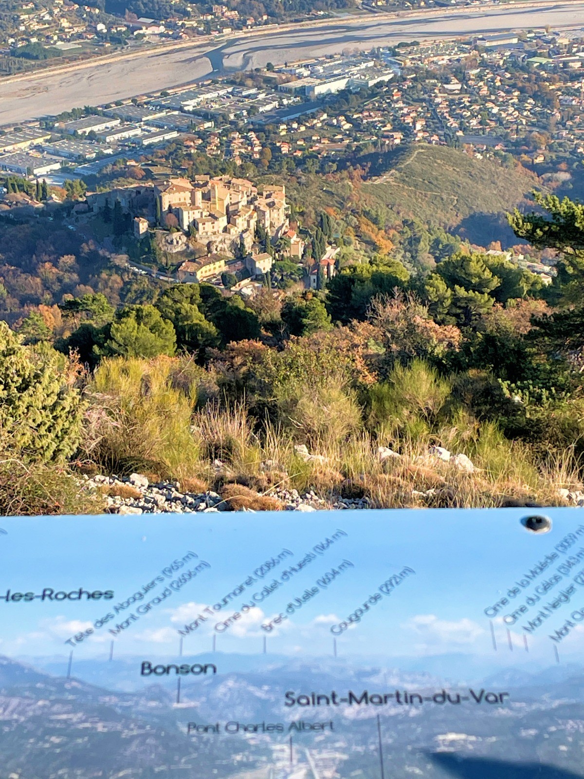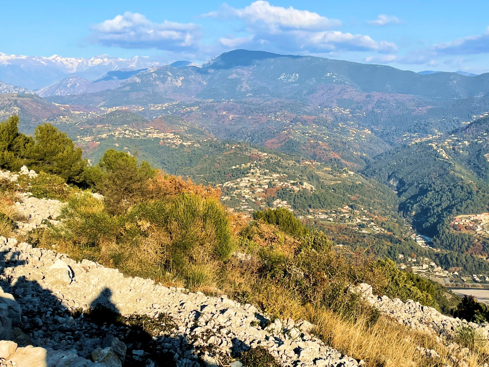 Petite randonnée au départ de Carros Village vers le Canal de la Gravière.... la montée de départ n'est pas très longue mais assez raide par moments, sans visibilité car en sous bois. Le haut permet une très belle et large vue sur le Mercantour, la vallée du Var, la mer. Redescente par le Gourbet, à faire prudemment car assez glissante.