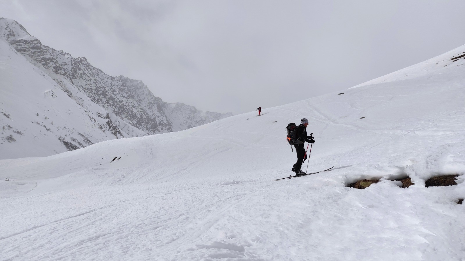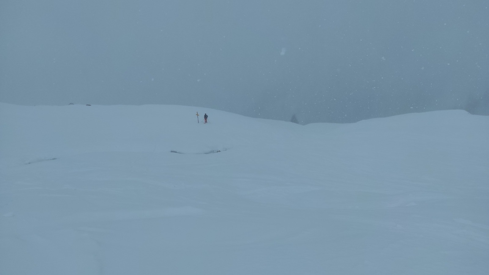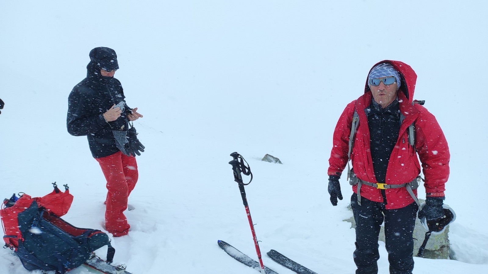 Arrivés à Bonnenuit où nous allons passer quatre jours, on tente la pointe des Ratissieres. Temps nuageux au départ cela devient vite venté sans visibilité. Nous croisons Beb sur le retour puis Thierry et les jeunes. Froid et vent, manque de visibilité ont raison de nos velléités, Abandon.