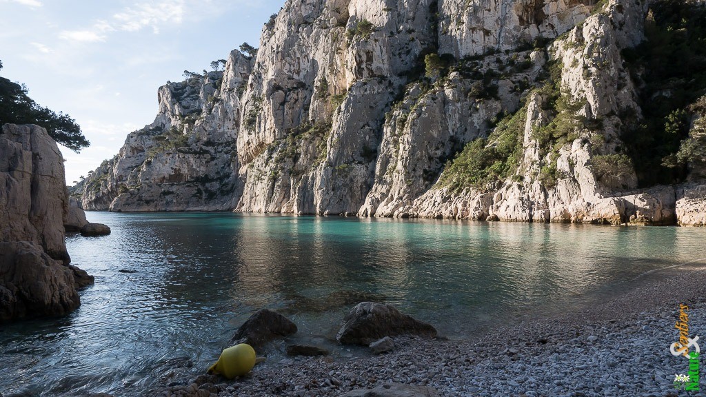 Vallon d'En Vau à suivre jusqu'à la plage de la calanque. Le raide sentier rouge ? interdit aujourd'hui ? débouche sur le