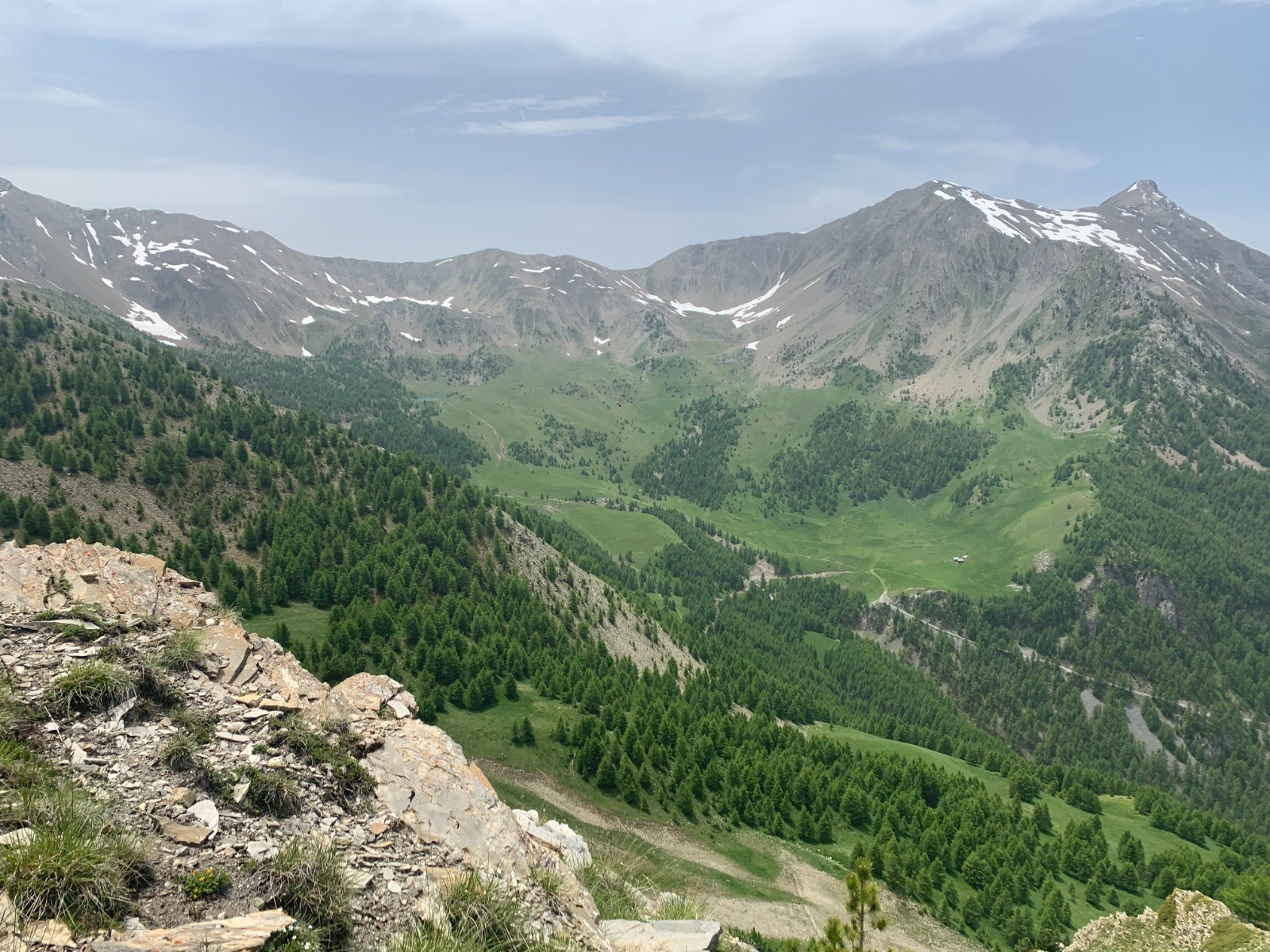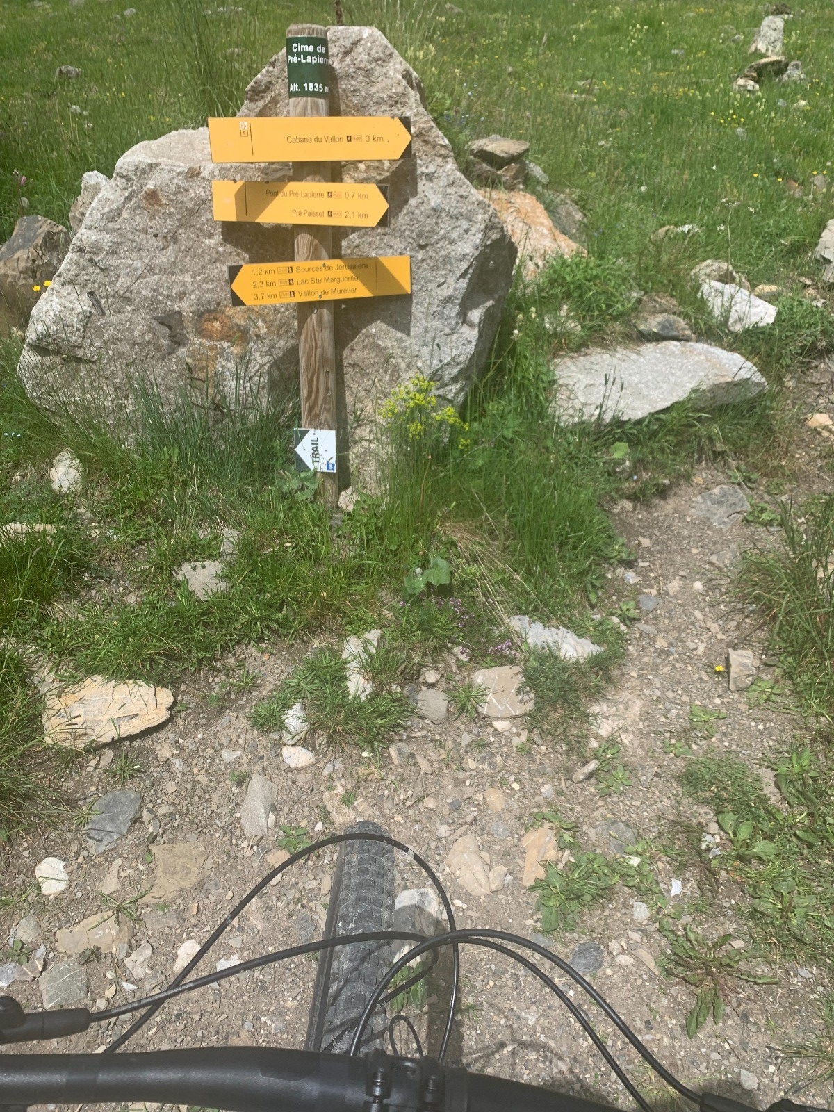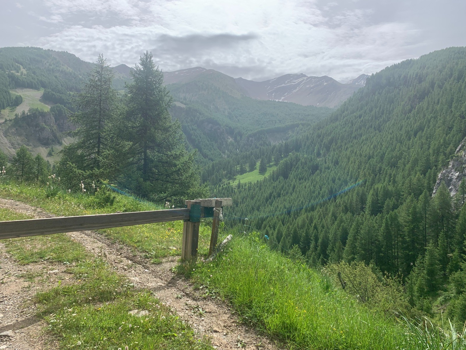 Départ au parking de la Draille 1500m puis le chemin forestier de la Grande Rocade qui monte progressivement jusqu'à 1650m pour rescendre progressivement vers 1569m, il faut prendre le chemin sur la droite qui grimpe jusqu'à la cabane du Vallon 1842m et continue en balcon à travers les sapins et finir par une courte descente jusqu'à l'intersection. Prendre à droite pour une grosse montée raid jusqu'au palier qui délimite l'entrée du cirque et la cabane du lac 2085m. On continue par le chemin pédestre très raid jusqu'au lac Sainte Marguerite 2228m. Ensuite le chemin choisi est rude et caillouteux jusqu'à un petit belvédère 2370m puis plus loin un autre passage similaire vers 2400m qui necessite du poussage. De là on emprunte les pistes de ski jusqu'à la cabane de la Portette 2230m puis une longue descente mi piste mi chemin jusqu'à la retenue d'eau de la Station des Orres vers 1800m puis plus bas le petit village de Pramouton. On passe à coté du batiment de l'UCPA pour rejoindre le GR et le hameau des Léautiers et reprendre le chemin forestier jusqu'à la Draille