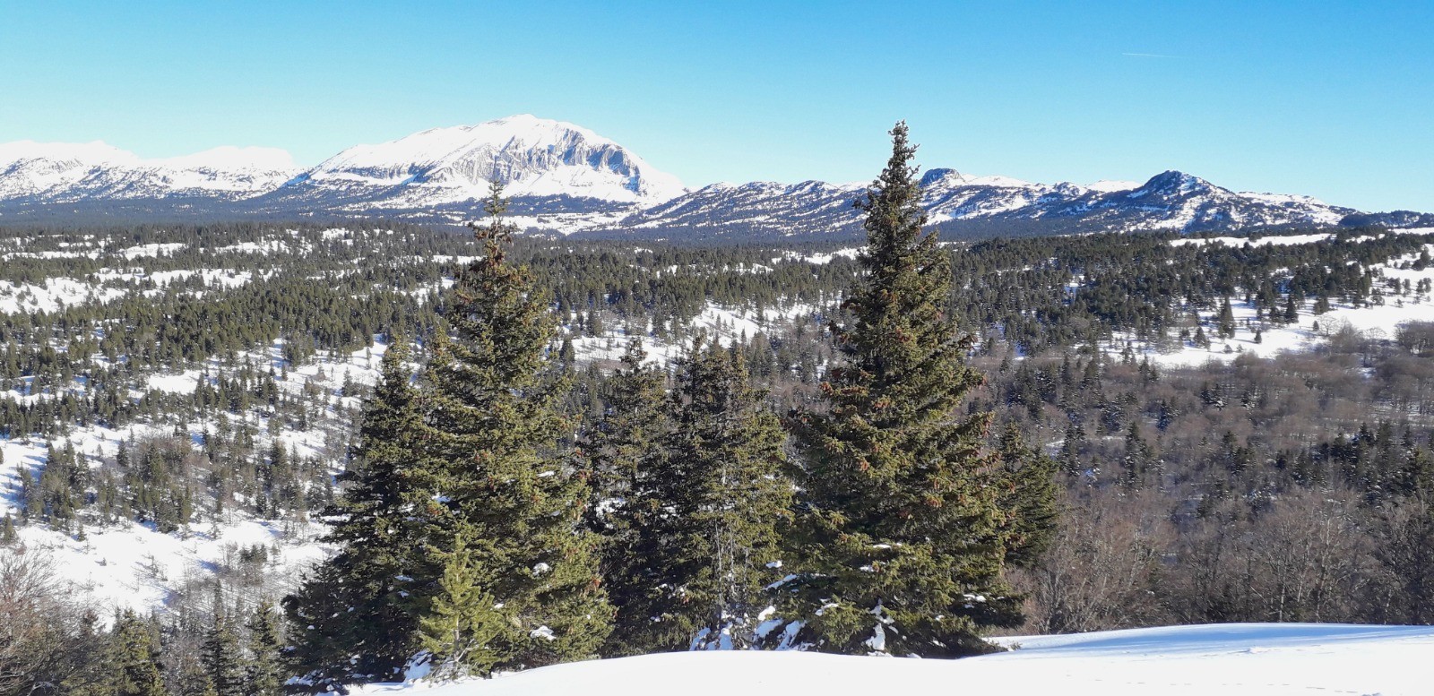 Départ tardif du Plateau de Beure, un classique de la raquette avec de nouveaux passages.