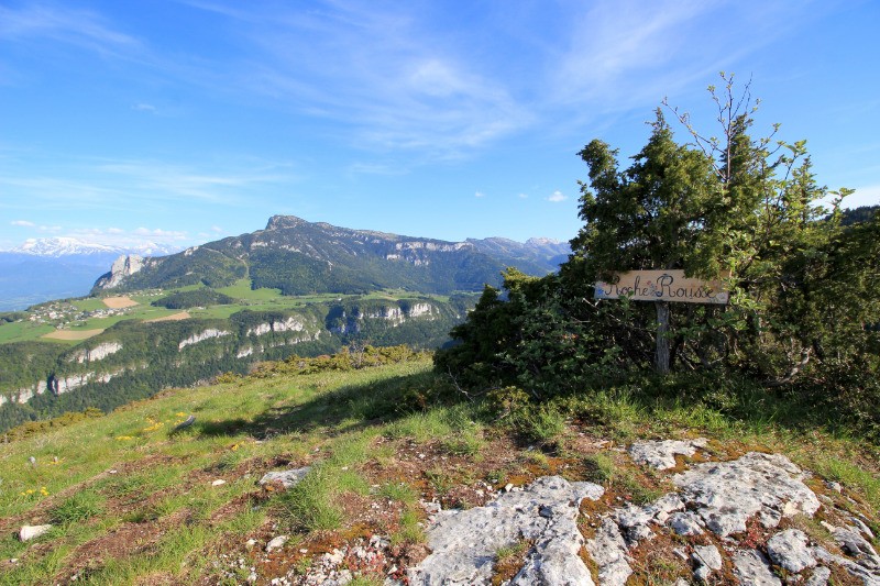 "Roche Rousse" par un beau sentier de crêtes direction Sud Ouest. Le sentier bien marqué (anciennes marques bleues) descend ensuite jusqu'à la grande Combe en passant par