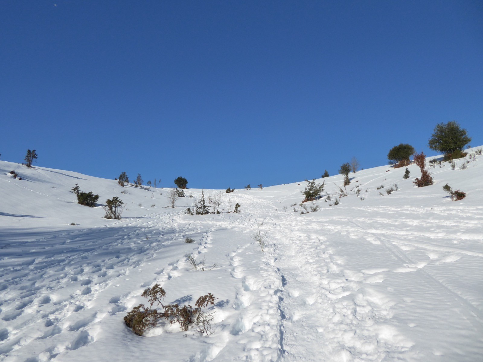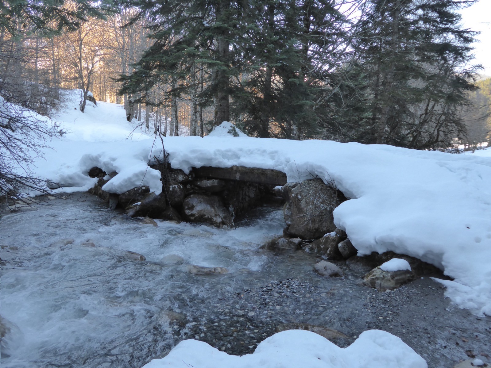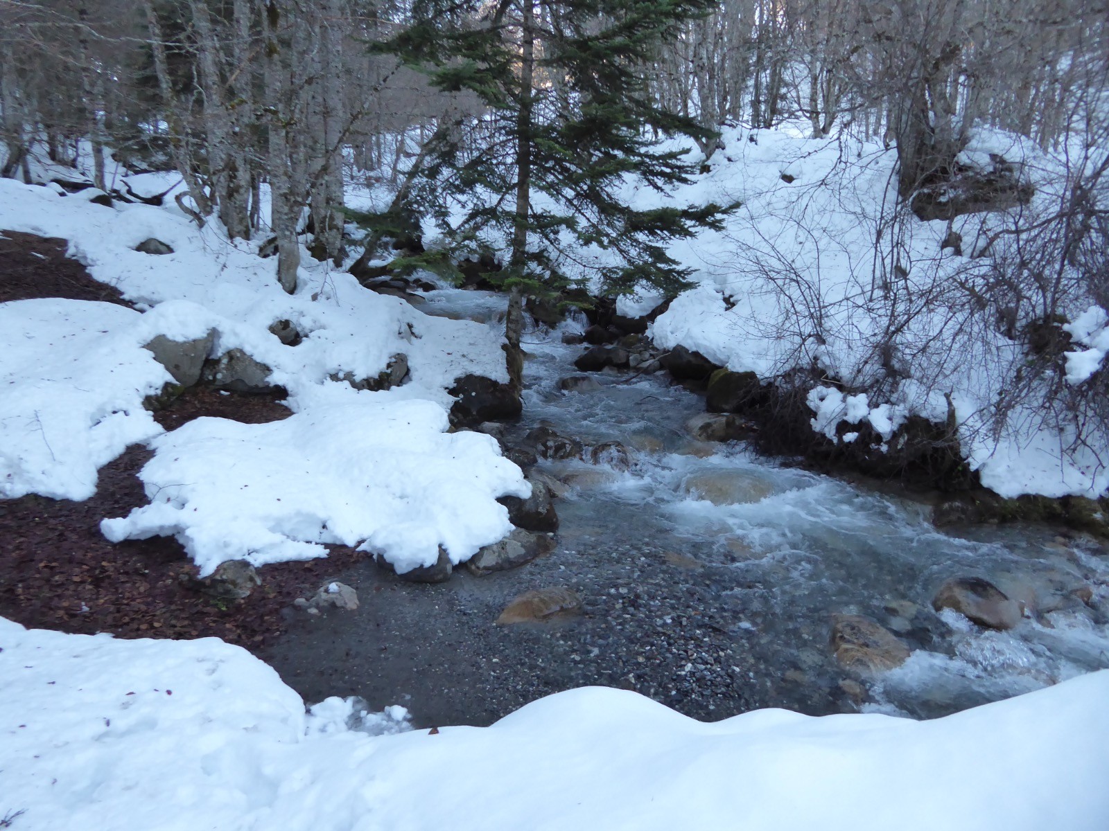 Une grosse couche de neige s'est posée sur les montagnes , ici nous avons près d'un mètre à certains endroits. Au-dessus du Cap de Camiet une congère de1,40 bloque le sentier de départ aux Esclozes. Le temps est magnifique et le Pic du Midi majestueux ainsi que le Coste Oueillère, le Monfaucon, et l'Arbizon, le Soum de Marianette la Bèque... où évoluent des skieurs.