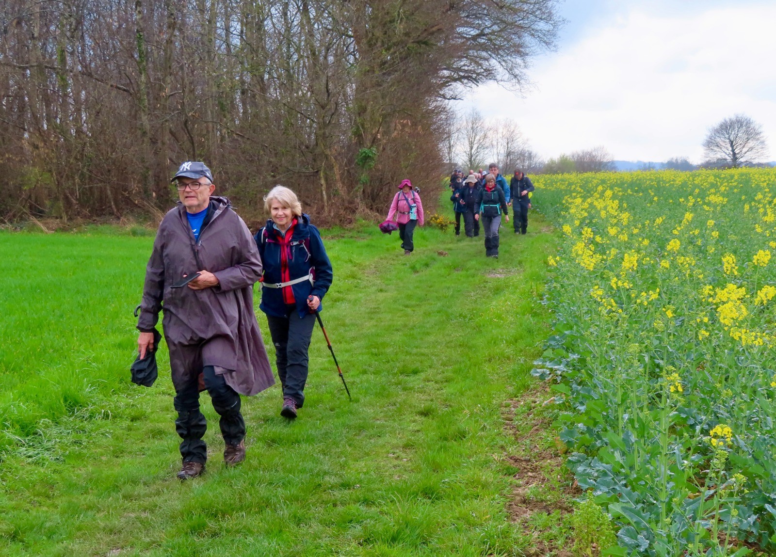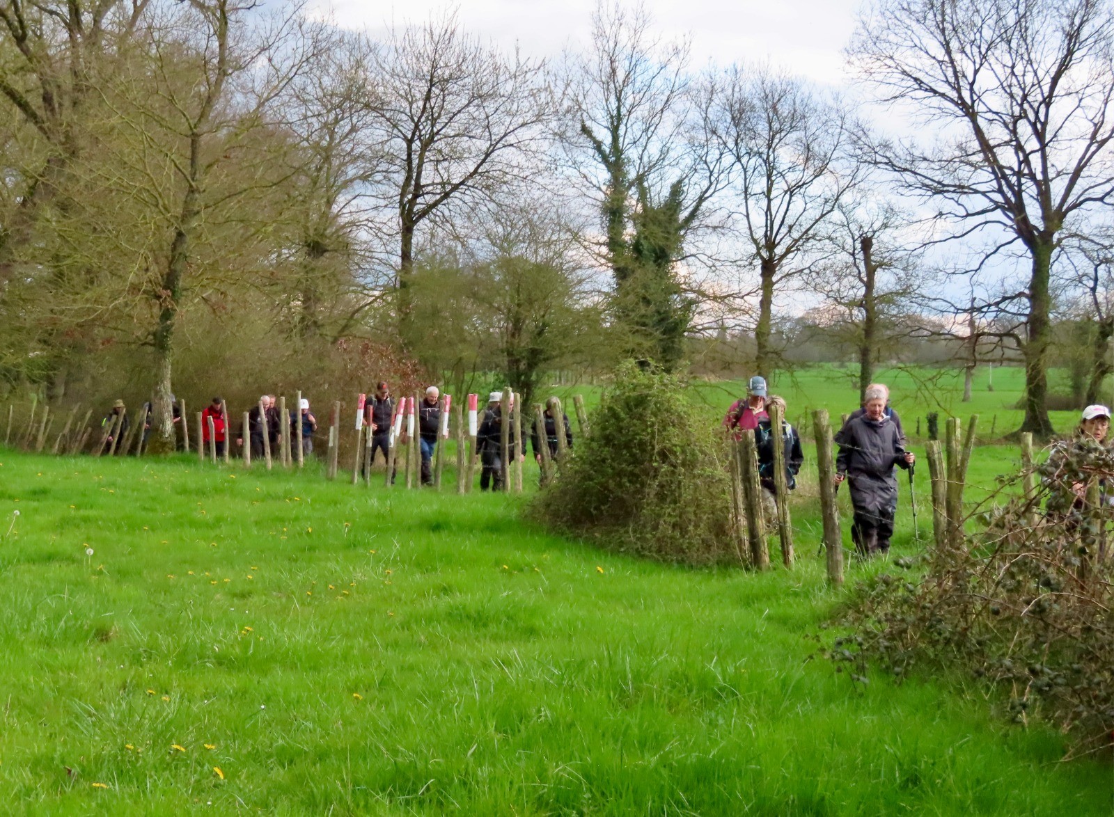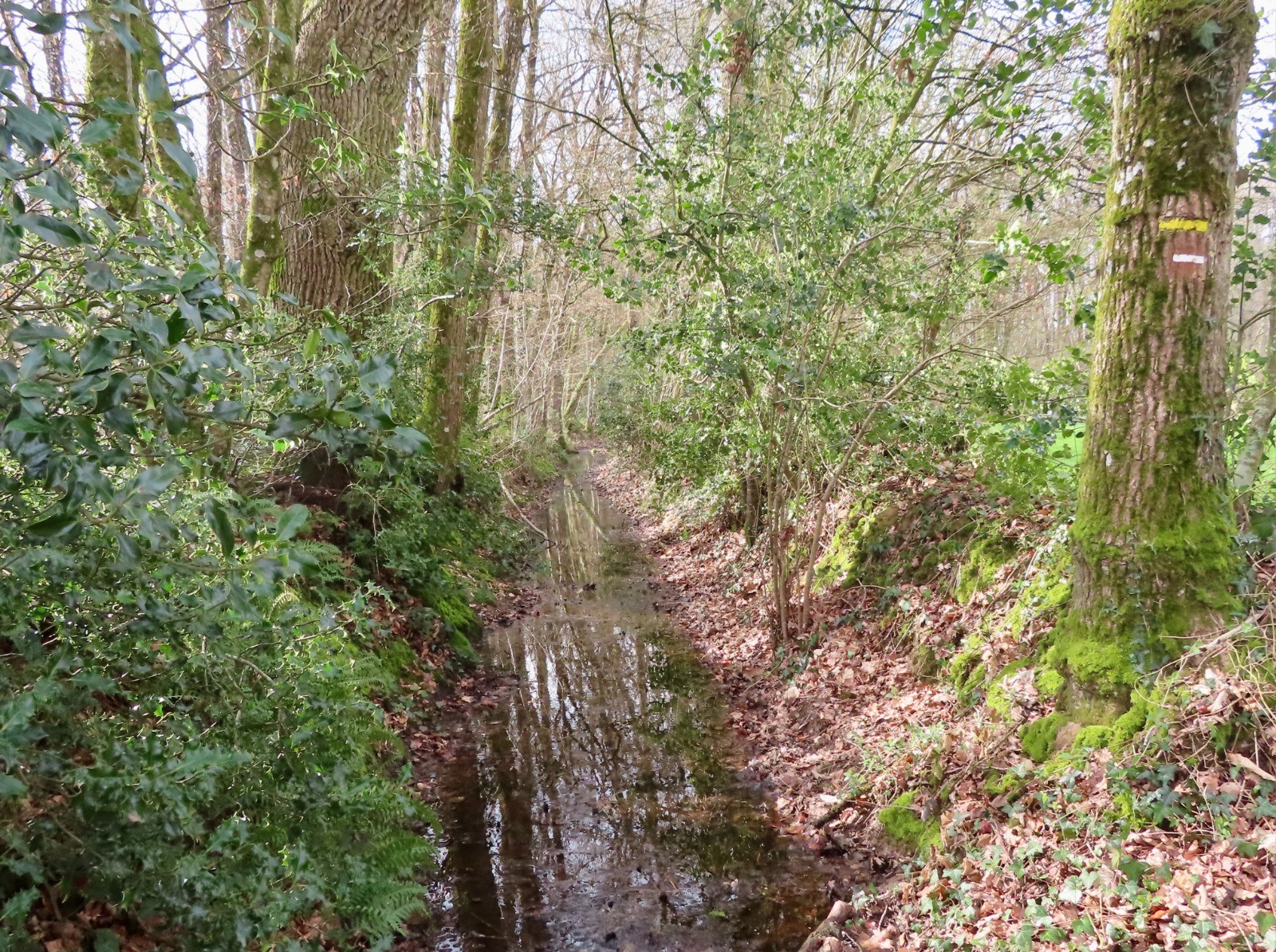 Du parking, partir à gauche rue du Champ Mulon, puis à droite dans l’allée longeant le stade vers la Mare Guesclin. Rejoindre le circuit Hermeland-Ouest qui contourne les habitations par le nord, puis effectuer une courte boucle au nord par le circuit de la Salle avant de retrouver le C104. Traverser la D36 et suivre un sentier herbeux longeant des serres. Poursuivre par une boucle au sud sur le sentier d’Orgerblon, puis remonter vers la D36 et l’entrée du centre-ville. Continuer par une large boucle au sud-est jusqu’au ruisseau de Bodin et au hameau du Plessix. Retour enfin par les bords de l’Ise et le plan d’eau de la Mare Guesclin jusqu’au point de départ.