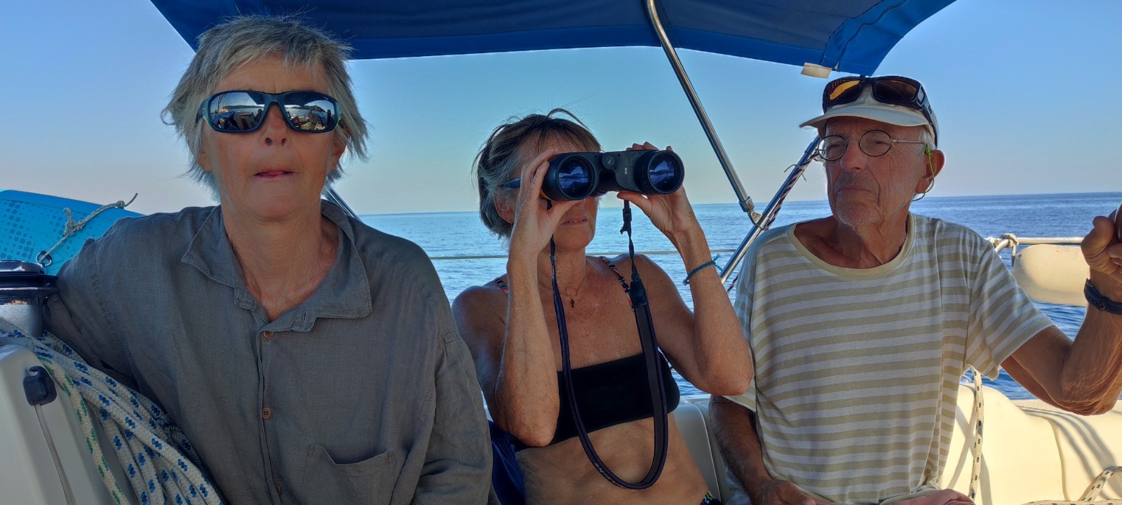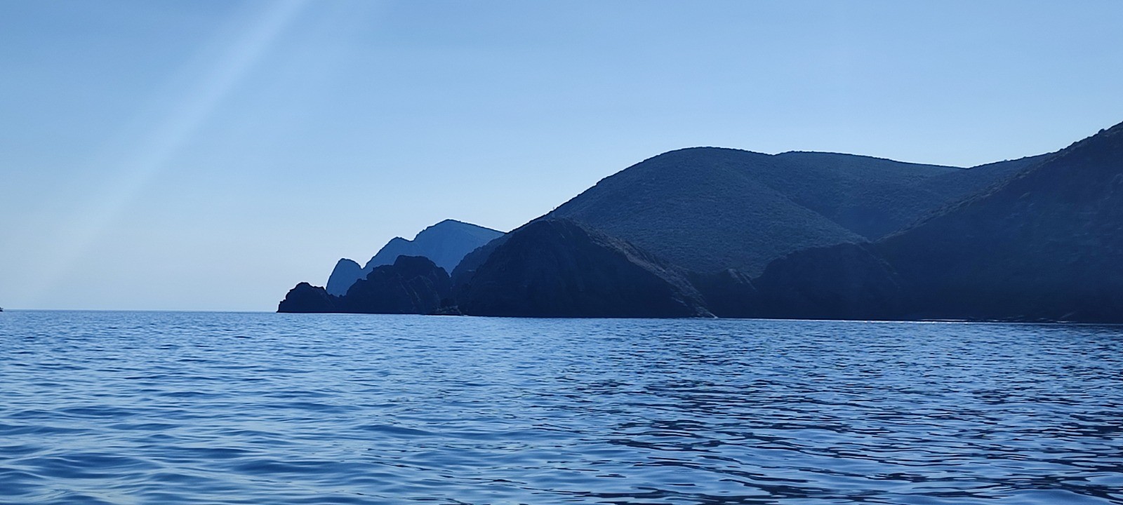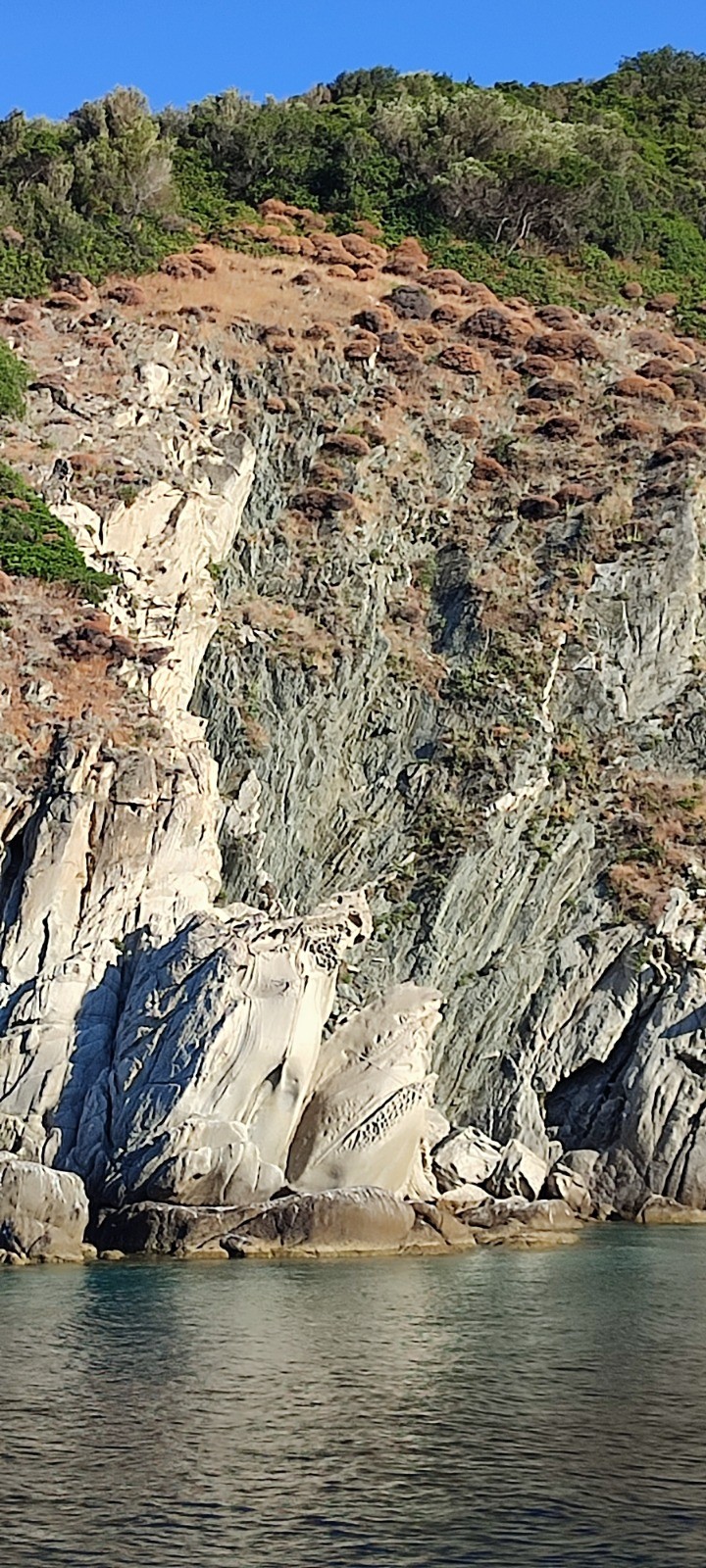 Après palabres nous optons pour partir déjeuner de l'autre côté. Mouillage, déjeune agrémenté par la surveillance d'un paddle abandonné en pleine mer. Quand le plongeur se décide à ce montrer nous repartons sur l'autre bord du doigt, notre destination tion initiale. Nous dedaignons une grande baie touristique, echouons à mouiller dans une jolie crique mais étroite et l'ancre dérape. Mouillage suivant réussi avec haussière à l'arrière sur un beau béquet.
