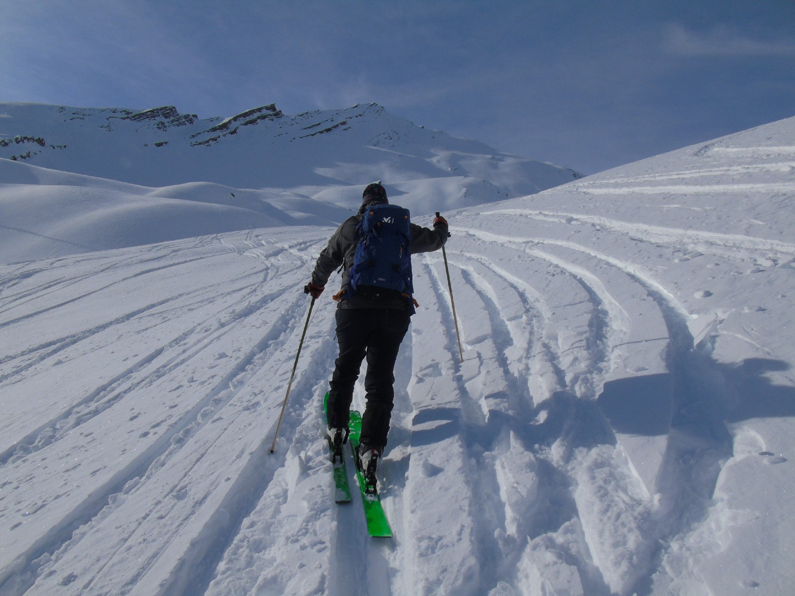 Au fond du vallon des Moulins, à gauche en montant, il y a ce petit vallon discret et peu parcouru qui même au col de Pertuité et à la paroi du Midi. Plein nord il garde la neige poudreuse, tardivement. Et il n'est pas très parcouru, tranquillité garantie comparé à sa grande sœur la Pointe d'Emy. Les paysages sont superbe sous impressionnante grande Chible. Et la descente est très variée et ludique! Un bon plan!!!