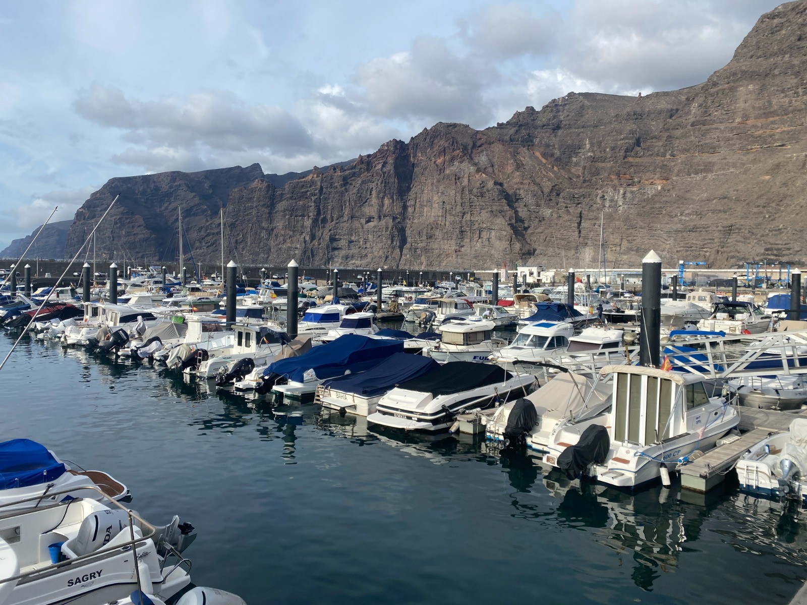 Description : Une marina près des falaises de Los Gigantes