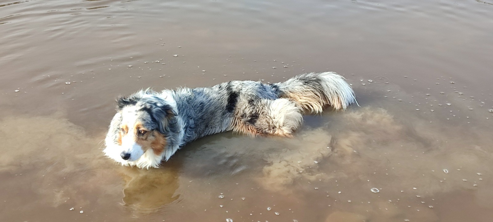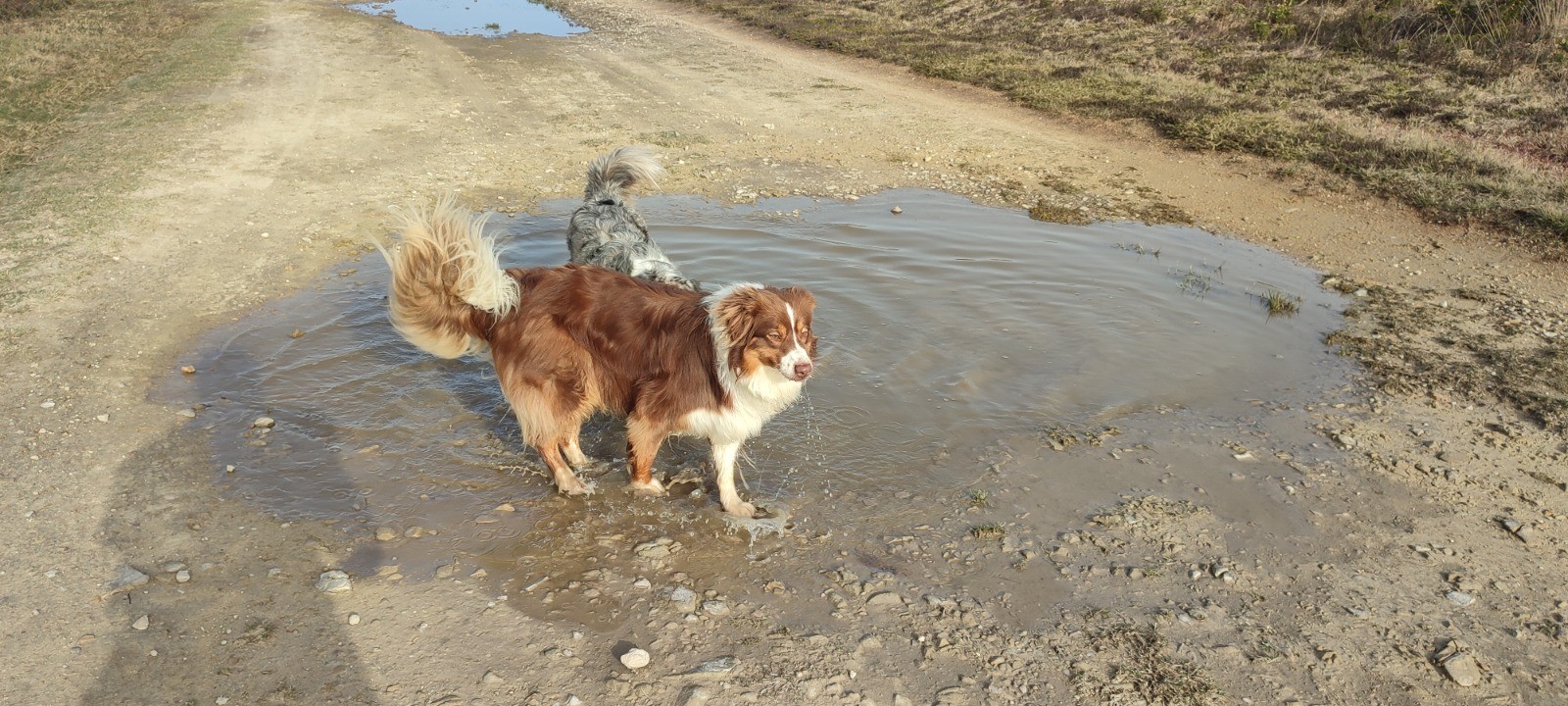 2 bergères (australiennes) dans le Ruisseau du Vivier et à la