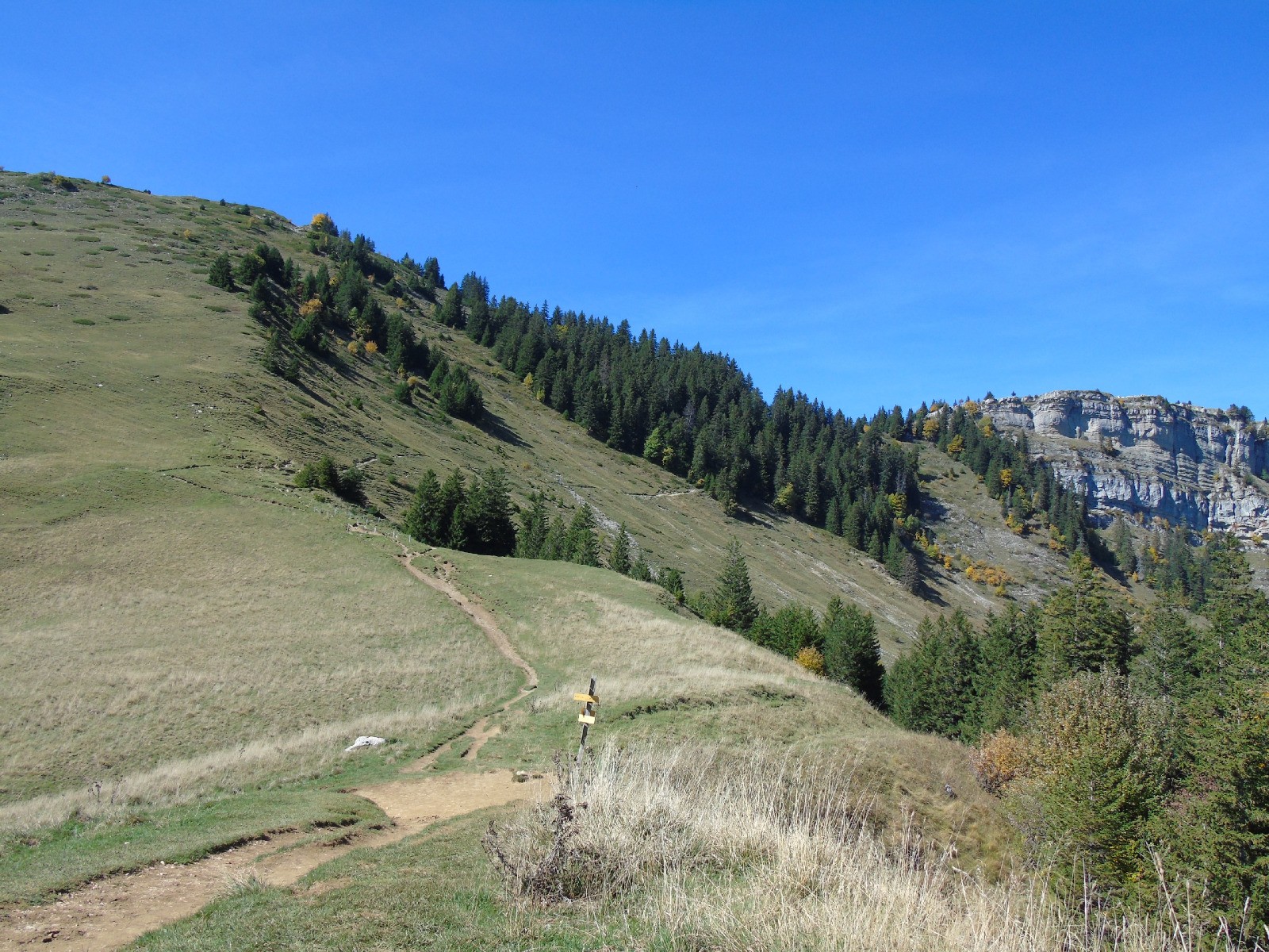 Un sentier main droite monte facilement (à pied) en 5/10mn au sommet du Dôme d'Arguille (faisable en VTT à la descente, mais poussage/portage à la montée).
