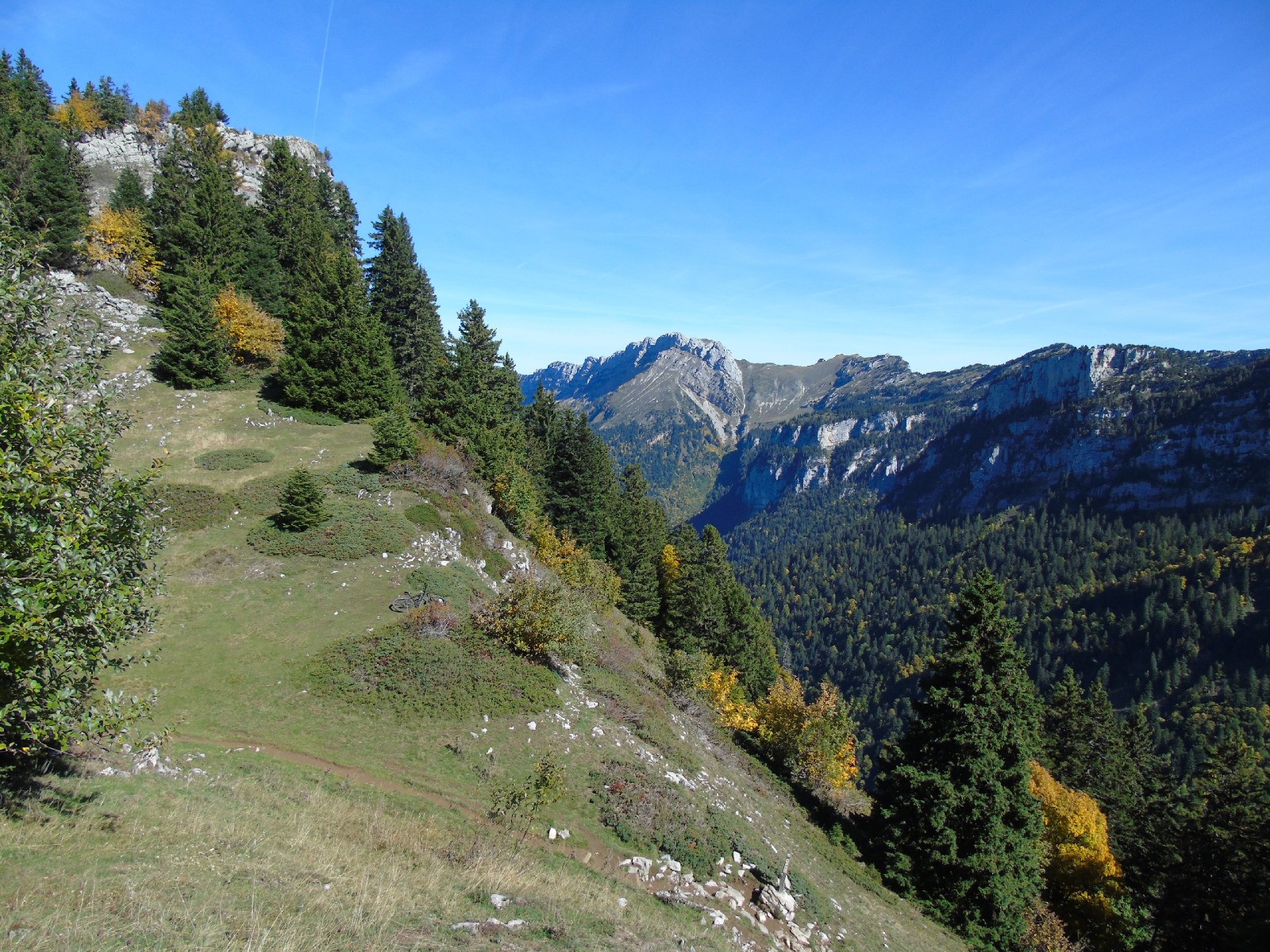 Du col des Ayes rejoindre le parking du col du Coq par la piste bien roulante, très sympa (à préférer au GR9 qui est inroulable dans la forêt sauf à avoir un gros gros niveau, j'ai testé...)
