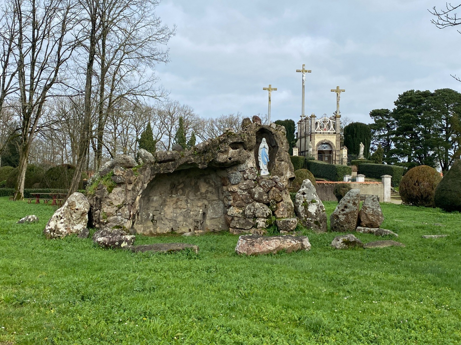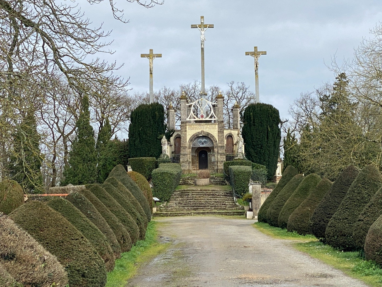 Auparavent nous passons au pied d'un calvaire doté d’une chapelle et entouré d’un surprenant cimetière en forme de fer à cheval. ( photos no 13 & 14 )