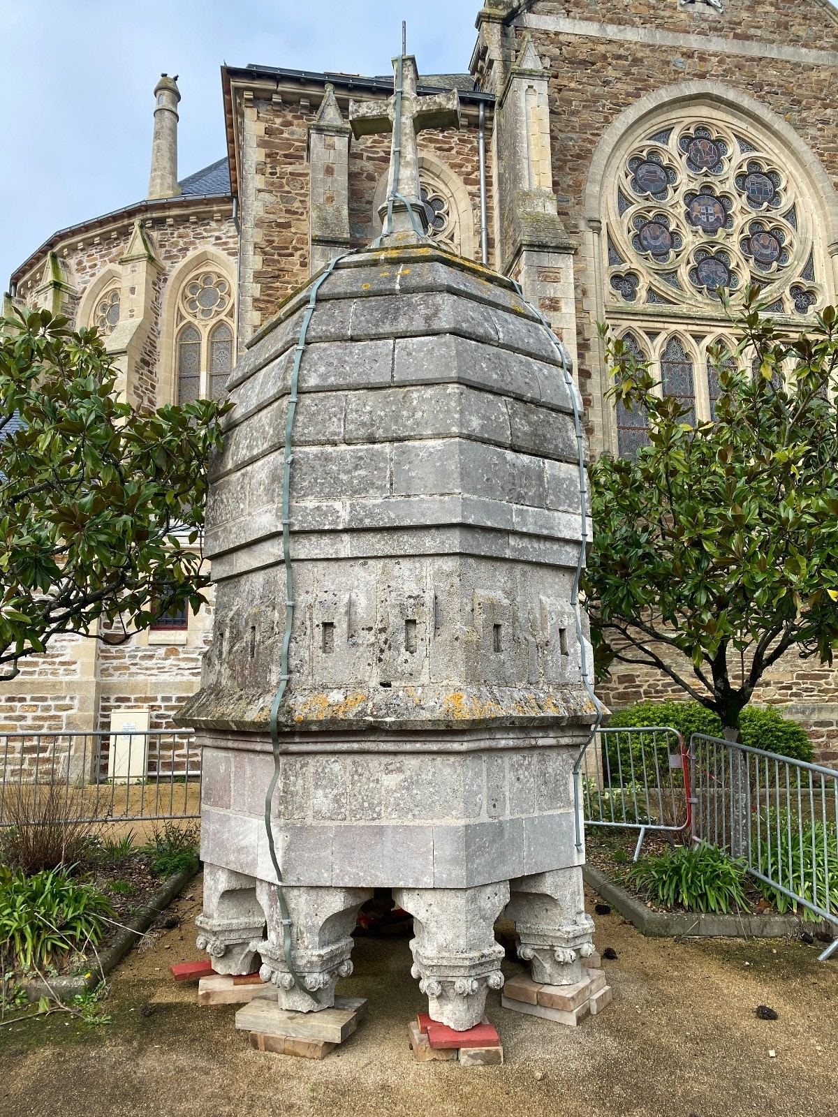 Dans le bourg : le clocher fragilisé de l'église de Saint-Hilaire-de-Chaléons a été démonté et git au pied de celle-ci ( photos no 11 & 12 ).
