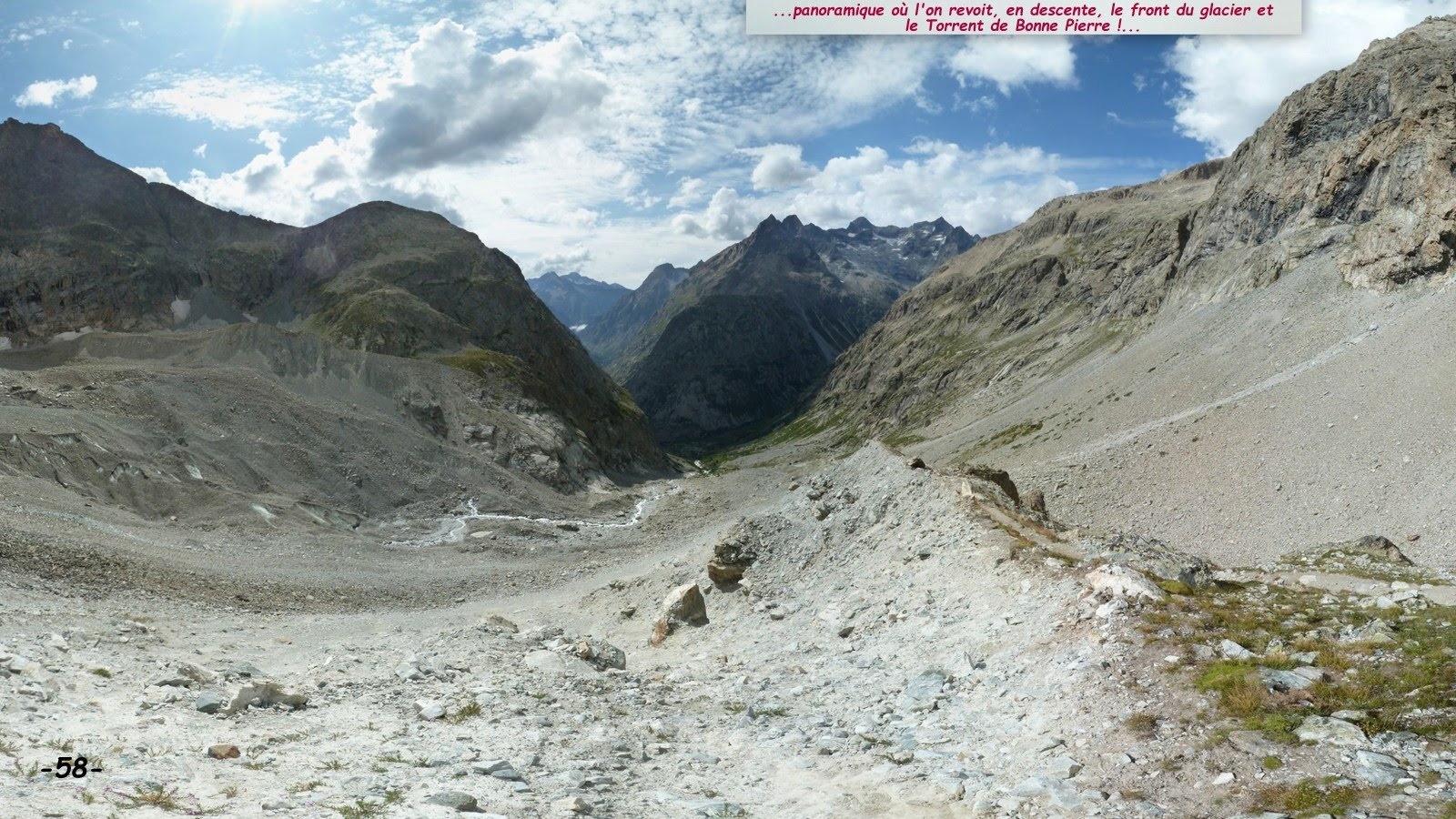 Le sentier classique du Vallon de Bonne Pierre qui suit le fil de la moraine de son Glacier est déjà une randonnée d'envergure (les Guides de la belle époque avait pour habitude de dire « tous ceux qui ont monté ou descendu cette longue moraine s'en souviennent ! »), l'enrichir de la visite du petit lac dans le premier creux à l'ouest de la station météorologique, suivi de la longue et caillouteuse traversée quasi-horizontale sous la Roche d'Alvau jusqu'à la verticale de la Brèche de la Somme, afin d'en élargir le panorama et d'en changer les perspectives en fait une randonnée d'exception, réservée aux randonneurs dit experts, car mieux vaut ne pas trop se tromper dans la descente de la VN de la Brèche de la Somme, jusqu'à sa jonction avec le sentier de montée sur la moraine à la cote GPS 2602 m.