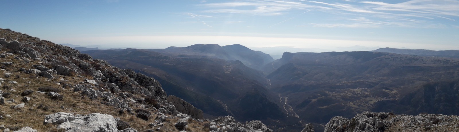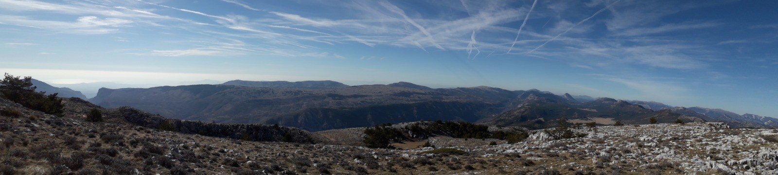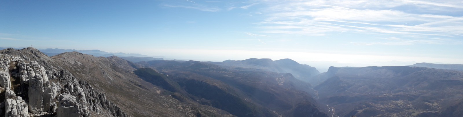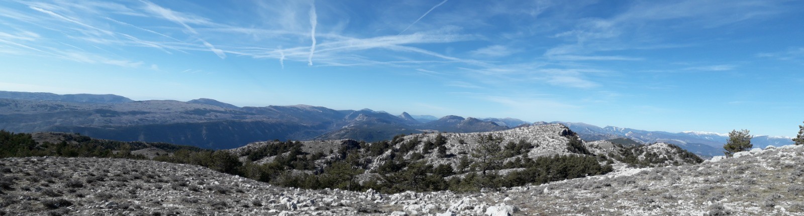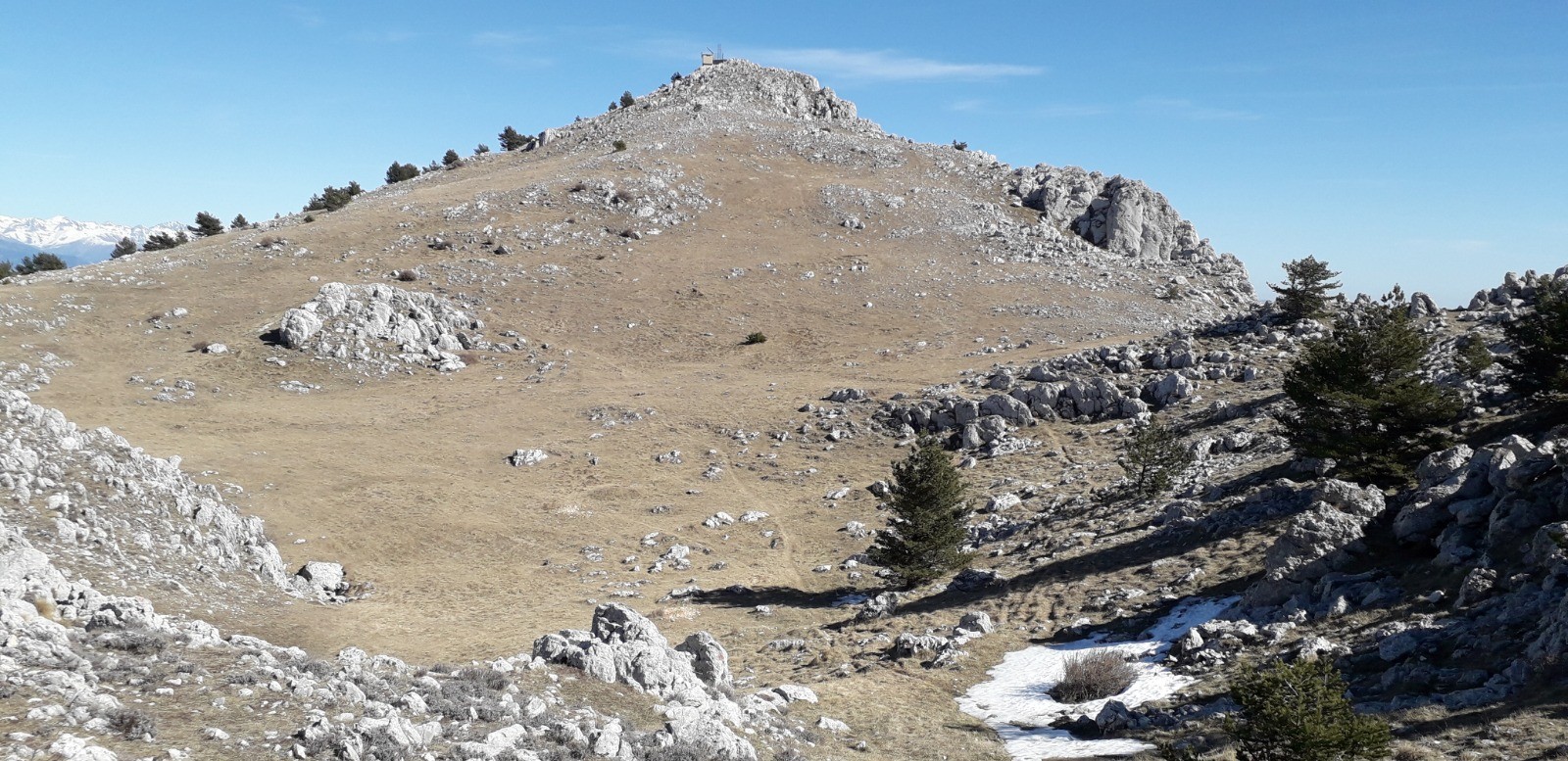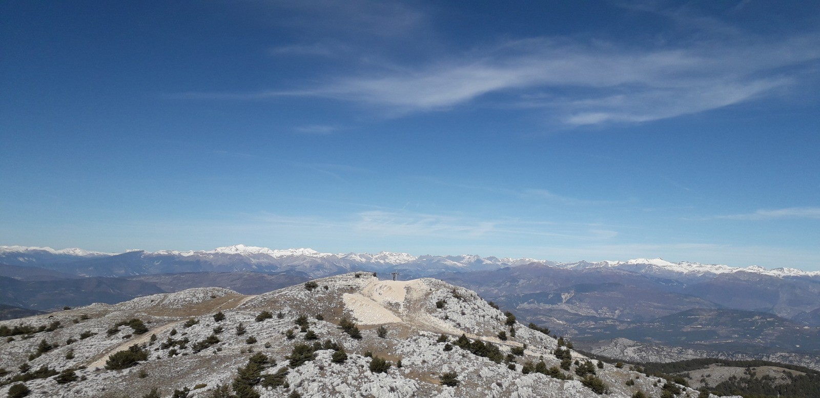 Fait le 22/02/20. Rando agréable offrant un beau panorama mais sans coup de coeur particulier depuis cette crête aride. Absence de neige à l'exception de celle déversée par quelques canons au bas des pistes de la station, ne nécessitant aucun équipement spécifique en cette saison particulièrement clémente. Je n'ai pas emprunté le GR 4 pour rejoindre le 1er tronçon menant au collet de Barri depuis la route de Gréolières mais cheminement sur une simple trace où il est indispensable d'avoir un GPS pour ne pas s'égarer. Idem jusqu'à la côte 1665 où le balisage est très rudimentaire sur un sol rocailleux parsemé de quelques cairns. A partir du sommet on a un point de vue majestueux sur 360 ° et il suffit de dérouler sans difficulté jusqu'à la Croix de Veste sur cette crête désolée avant de revenir sur ses pas sur 800 m pour couper à travers le versant afin de rejoindre la station. Contraste au sommet entre l'immensité des perspectives et la proximité des pistes de ski démunies de végétation d'où débouchent quelques "touristes". Plusieurs parapentistes s'élancent depuis les cimes et de nombreux vautours acclimatés les survolent également. Si vous passez par Gréolières, les ruines du vieux village qui le surplombent valent le coup d'oeil.