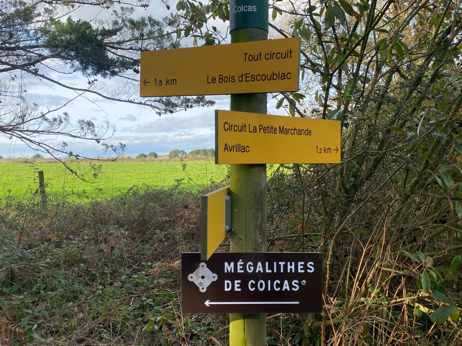Kilomètre 8.2 un petit détour vous emmène vers le mégalithe de Coicas ( photo no 18 ) Ce n'est pas un menhir mais les vestiges d'une allée couverte qui comptait encore neuf pierres à la fin du XIX ème siècle.
