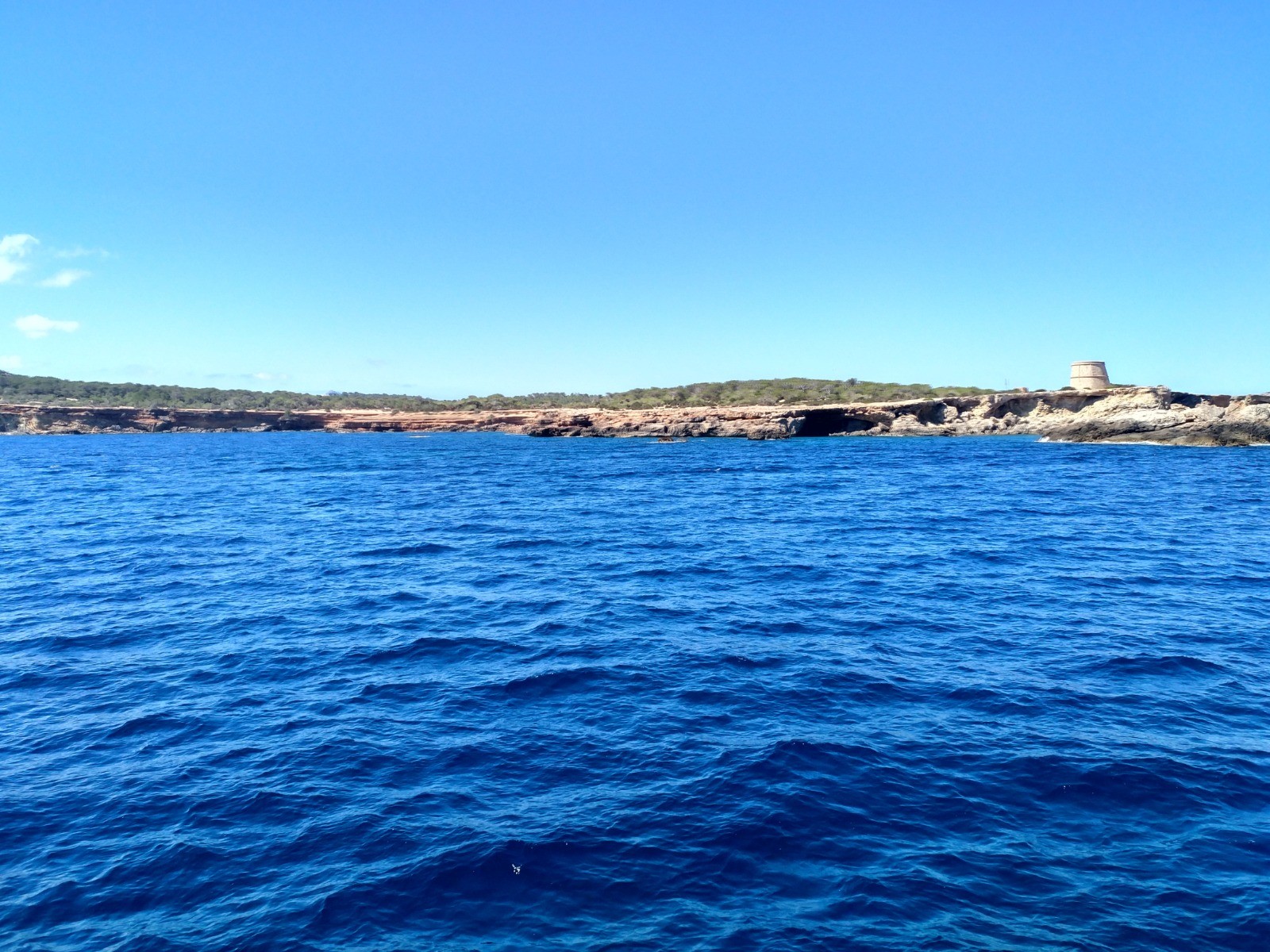 suivre le sentier en sur élévation de la mer. Il n'y a pas de marques mais le sentier bien tracé et contourne la presqu'île assez rapidement vous verrez une belle tour de défense qui vous servira d'orientation. Depuis la tour suivre le sentier bord de mer jusqu'à Cala Comte.