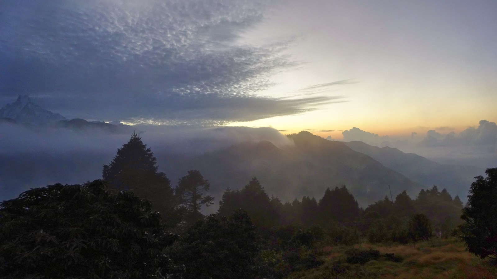 Lever aux aurores pour rejoindre le bèlvédère de Poon Hill afin d’admirer le lever du soleil sur les massifs des Annapurna, première grimpette de la journée à la frontal puis retour à la lodge pour le petit-déjeuner.