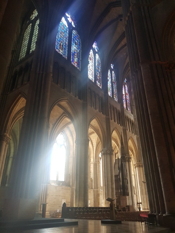 Balade dans la cité Rémoise permettant la visite de la cathédrale, de la basilique St Rémi, de quelques maisons Art déco incluant la bibliothèque, de la fontaine Subé, de l'Opéra art déco, de l'hôtel de ville, du palais du Tau et du cryptoportique.
