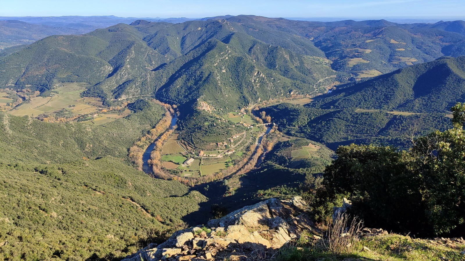 Au départ du hameau de Malvies, une superbe rando dans un environnement très varié, avec de magnifiques panoramas quasiment à 360° vers le Caroux, l'Espinouse, le méandre de Vieussan, la plaine biterroise et la côte méditerranéenne.